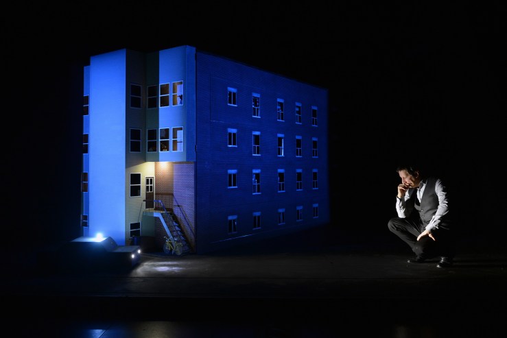 The apartment block where the play’s main – and only – character actually grew up becomes alive, with the help of an incredible off-stage crew, in the form of a giant dollhouse.