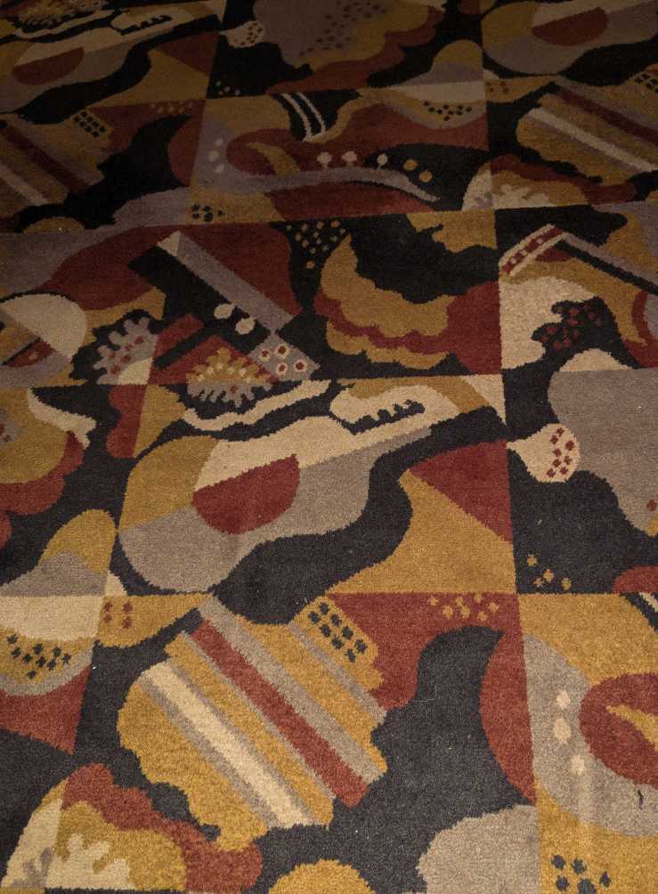 Starting point, a view over the Grand Foyer. Art Deco elements are omnipresent, floor to ceiling: the carpet we are walking on was designed by Ruth Reeves in 1932 to form a tile collage, each tile an abstract depiction of a musical instrument. Reeves had studied with French painter Fernand Léger in Paris in the early 1920s. Léger’s influence is evident in Reeves’ innovative design – so innovative that it looks every bit as modern today as at the time it was conceived, 85 years ago.Radio City’s interior designers Edward Durell Stone and Donald Deskey spared no expense nor effort to make the place as grand and stylish as possible. That is evident everywhere and restrooms are no exception. Here we are at the Ladies’ lounge, adjacent to the restroom on the third level, with a ”Panther” Mural of 1932, by Jenry Billings at its centre. Stylistically leaning towards Surrealism, still very much in place in an Art Deco environment. A ”Wild West” Mural, by Edward Buk Ulreich graces the Gentlemen’s lounge.The period leading to Christmas and New Year is the high season for the Rockettes who regularly go through their grueling routine of high kicks and tapping up to seven times a day and still do it with precision, impeccable style and – most difficult of all – a radiant smile (albeit a teary one at the end of the day). Here, we steal glimpses of one of their routines from the balcony.