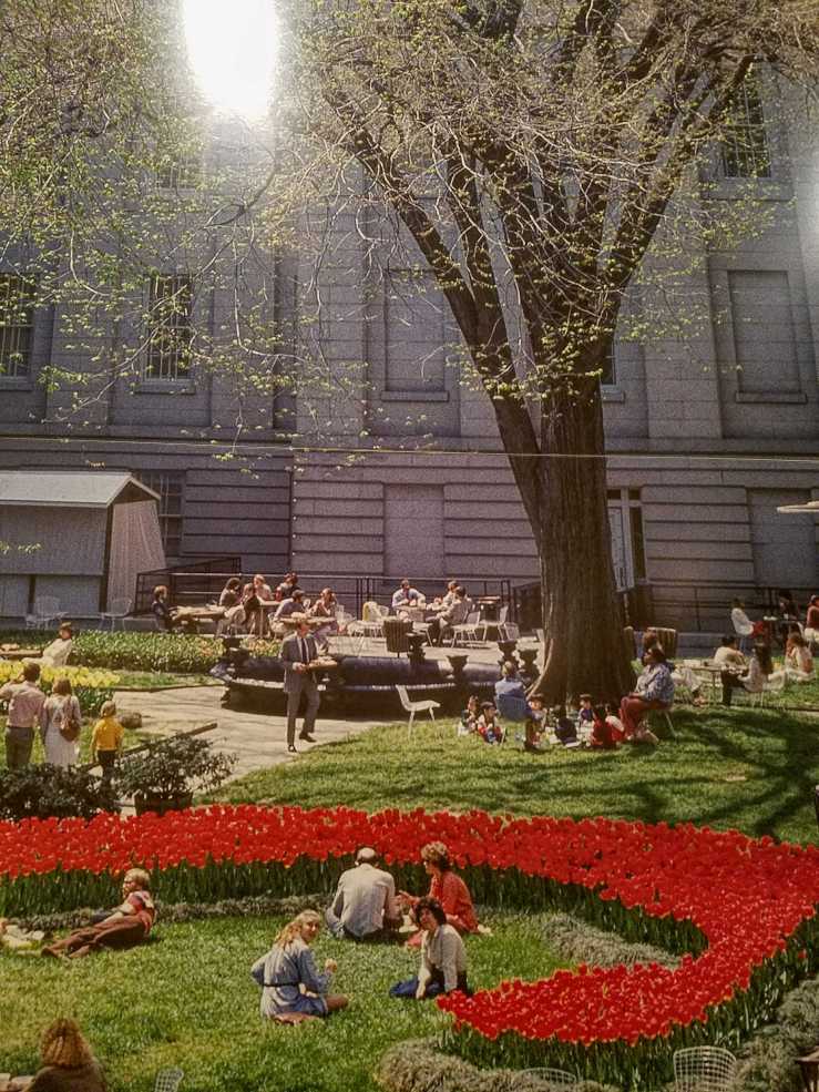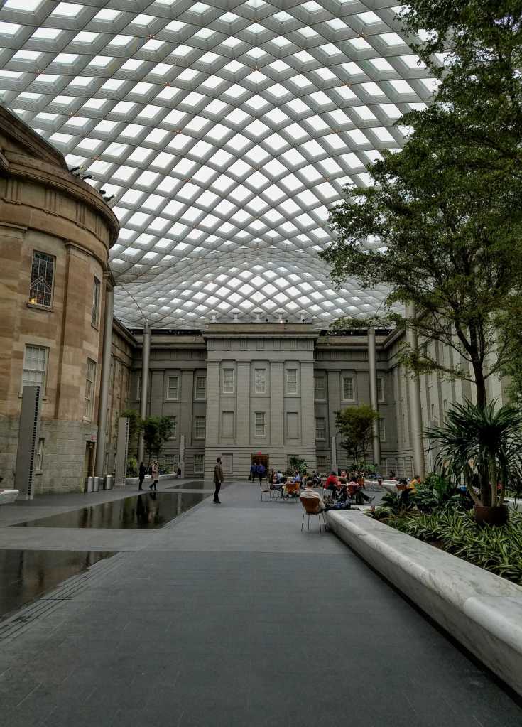 Its curvy white shape resembles a giant fishnet. It could be another work of art, but was actually installed to cover and protect an inner courtyard from the elements.