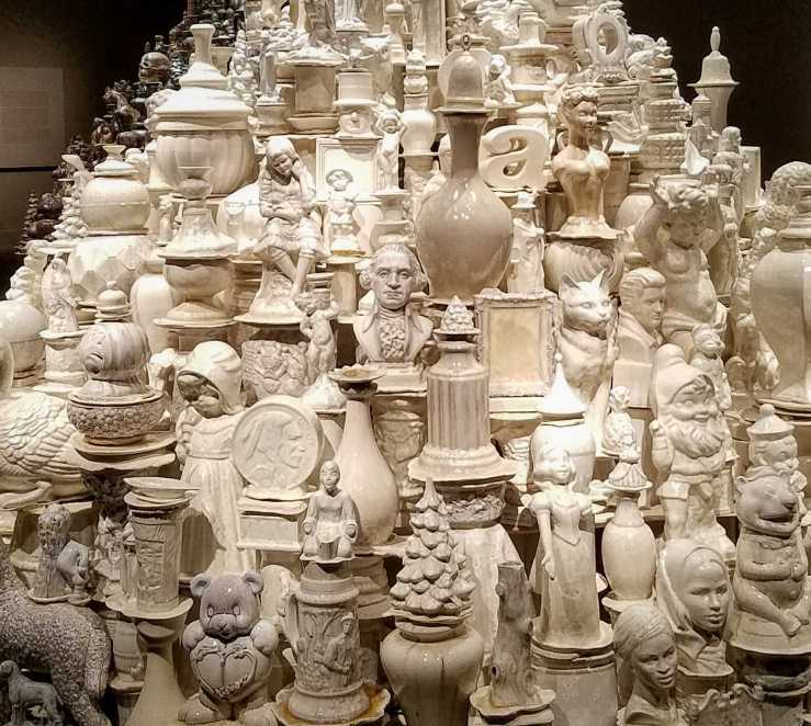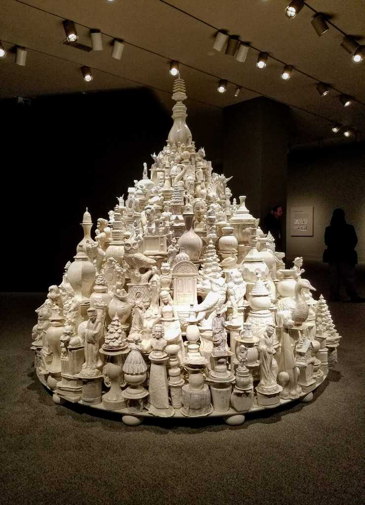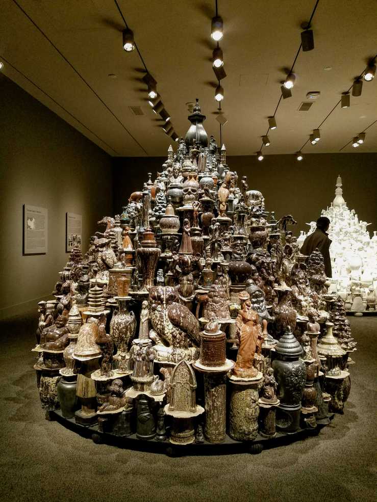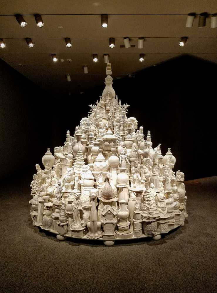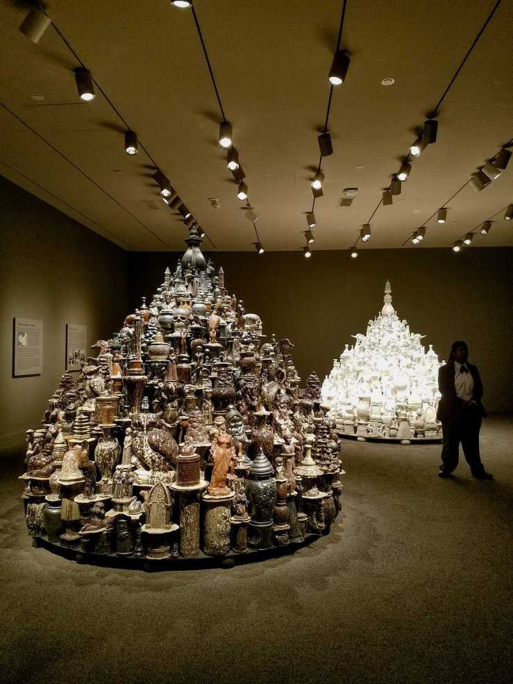 One artist’s inspiration piled up on giant heaps of china. The artist is Walter McConnell and these are his Dark & White stupas: