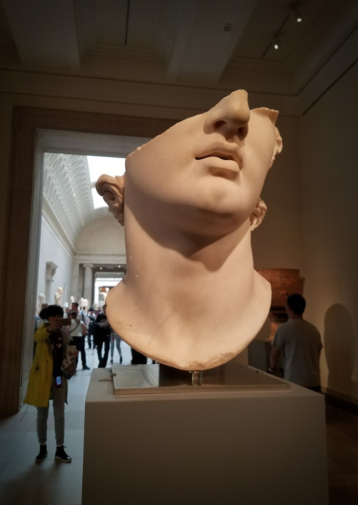 Although this extraordinary head has long been known, its function and importance have only recently been understood. The youth, with long curling locks and a brooding expression, was originally part of a draped bust set into a marble roundel almost four feet in diameter. It is probably among the earliest known sculptures of this type (imagines clipeatae) in marble and over life-size in scale. It would have been one of several that adorned the walls of a particularly grand space in the gymnasium of ancient Pergamon. He may represent a young god or possibly Alexander the Great. Even in its damaged condition, the head exemplifies the combination of sensitivity and presence characteristic of the finest Hellenistic Pergamene sculpture.