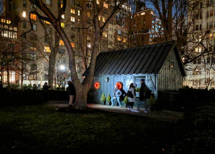 Finally, on Christmas eve, there was caroling in Gramercy Park. Where, once a year for a single hour, the exclusive park normally open to a small circle of key holders only, welcomes everyone with open doors and Christmas Carols sang by the choir of Calvary-St. George’s Church, a choir so melodic we had to follow them to their next round at the Christmas Eve Service, inside the church. I thought we would stay for a couple of songs, then leave quietly. Instead, we stayed for the whole service in what became one of the most uplifting experiences we could possibly hope for, this Christmas. Which goes to demonstrate that when religion is inclusive rather than imposing, and the church keeps up to date and young, it can only gain – if not devotees, at least a couple of new friends.
