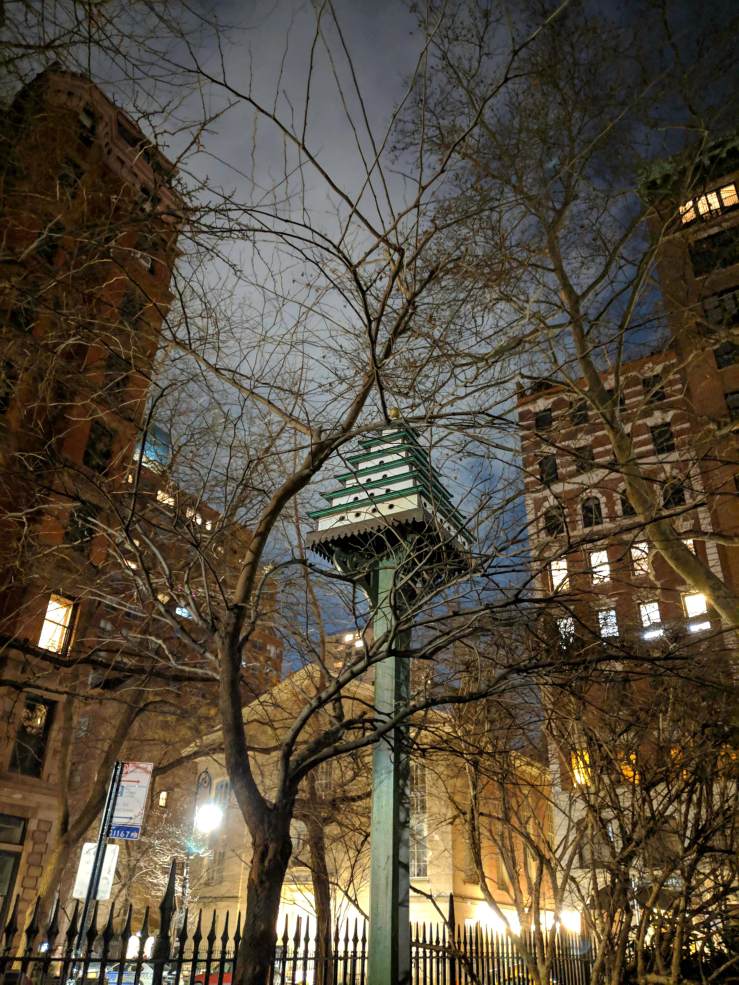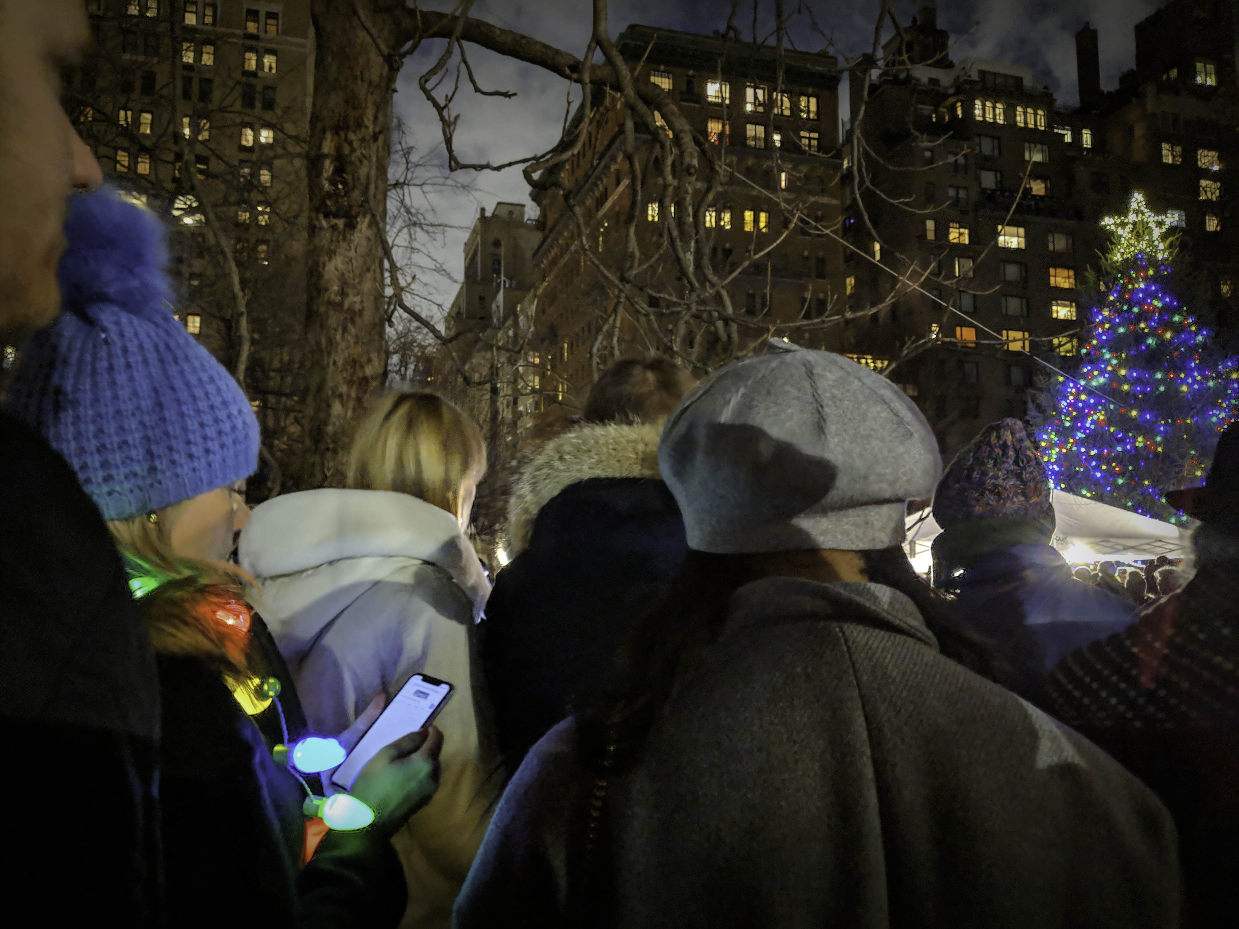 Finally, on Christmas eve, there was caroling in Gramercy Park. Where, once a year for a single hour, the exclusive park normally open to a small circle of key holders only, welcomes everyone with open doors and Christmas Carols sang by the choir of Calvary-St. George’s Church, a choir so melodic we had to follow them to their next round at the Christmas Eve Service, inside the church. I thought we would stay for a couple of songs, then leave quietly. Instead, we stayed for the whole service in what became one of the most uplifting experiences we could possibly hope for, this Christmas. Which goes to demonstrate that when religion is inclusive rather than imposing, and the church keeps up to date and young, it can only gain – if not devotees, at least a couple of new friends.