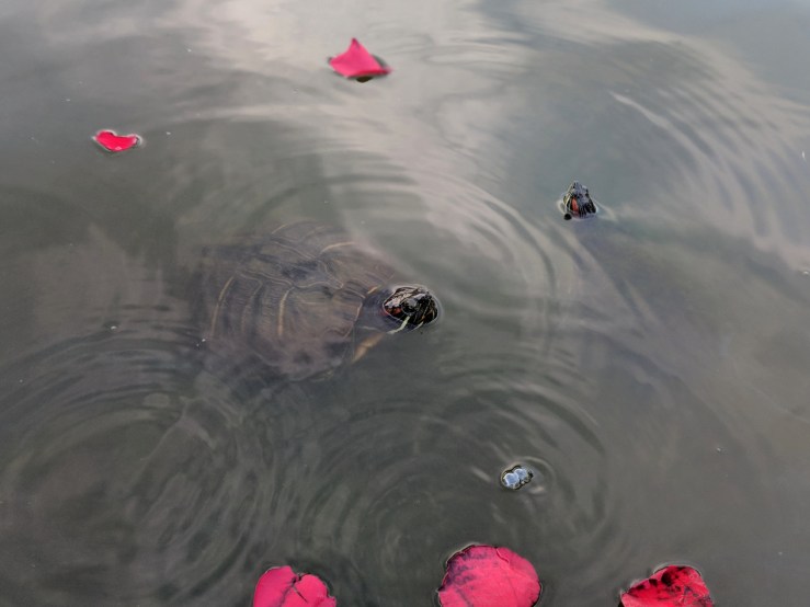 It’s not all rose petals and bubbles in the world of the red-eared turtles, at the bottom of the pond…