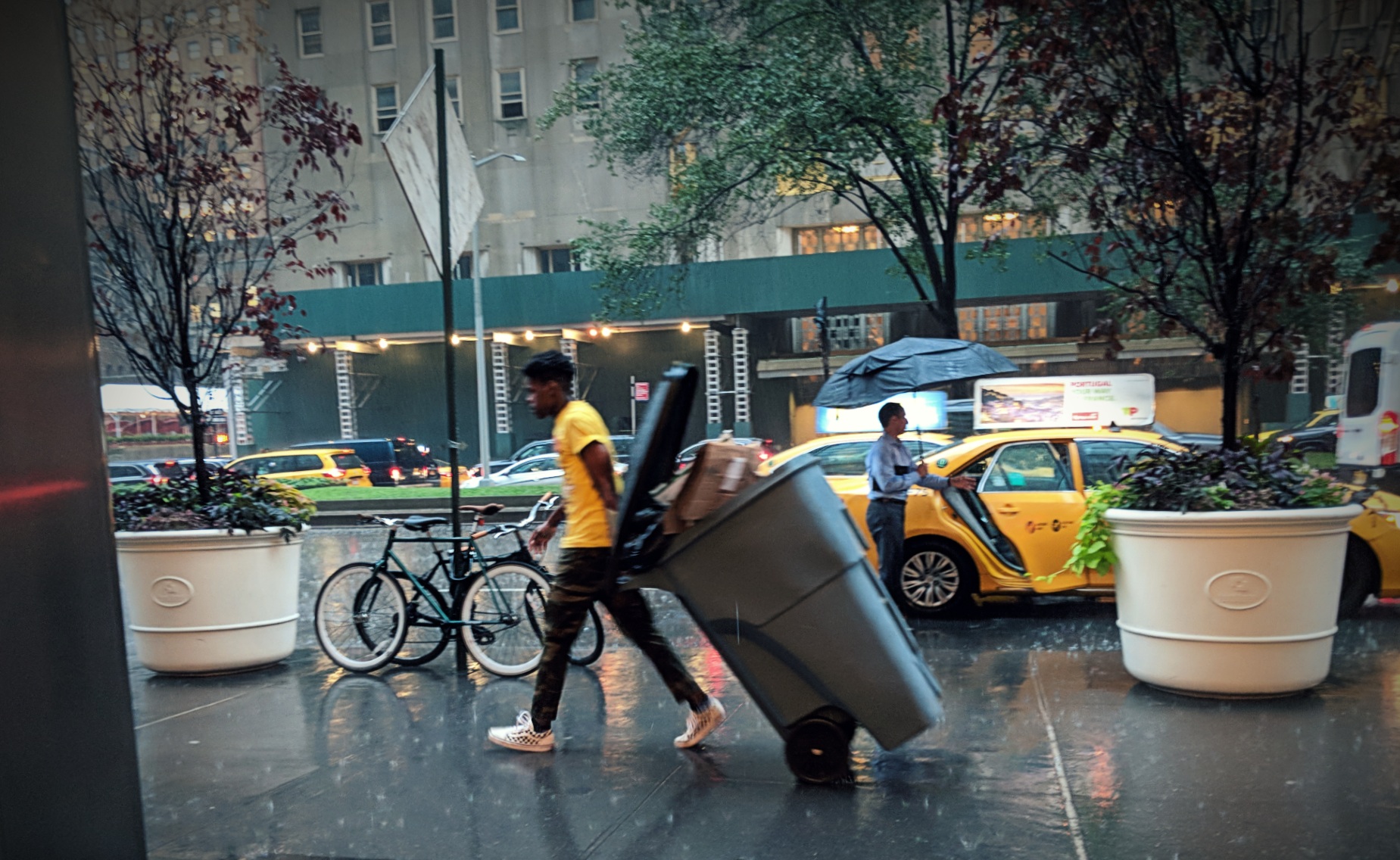 A sudden downpour found me completely unprepared and looking for shelter. A welcome, cooling break to wash away the grime and that distinctive New Yorky stink that clinks to your nostrils all summer long.