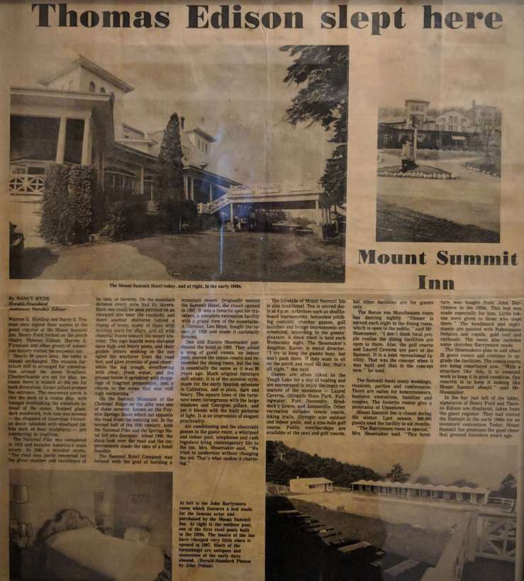 On top of a mountain overlooking Uniontown sits the historic Summit Inn, first opened to the public in 1907. It was built as a mountain resort for Uniontown’s elite as, according to the hotel’s history page, due to the coal industry in the early 1900’s, Uniontown boasted one of the highest rates of millionaires per capita in the world(!). Their goal was to build a mountain resort of “exceptional quality and durability” and they did a great job with the Summit Hotel.