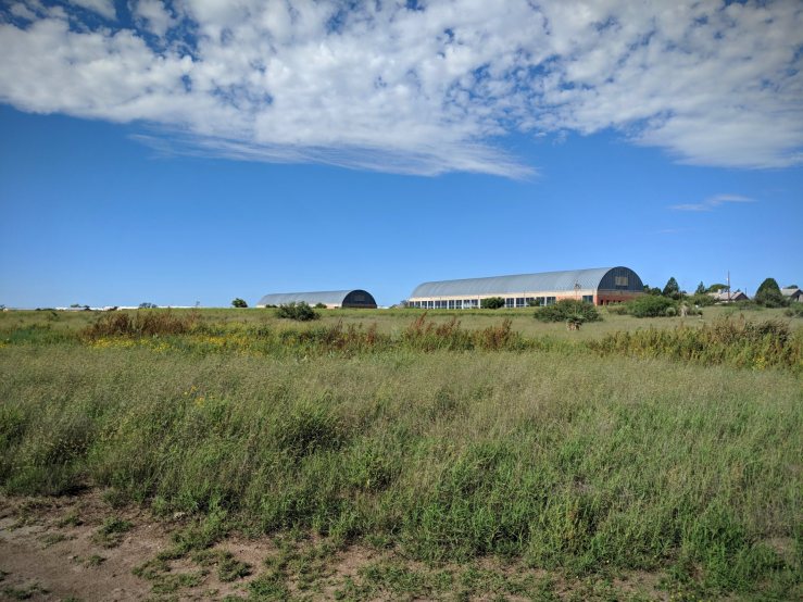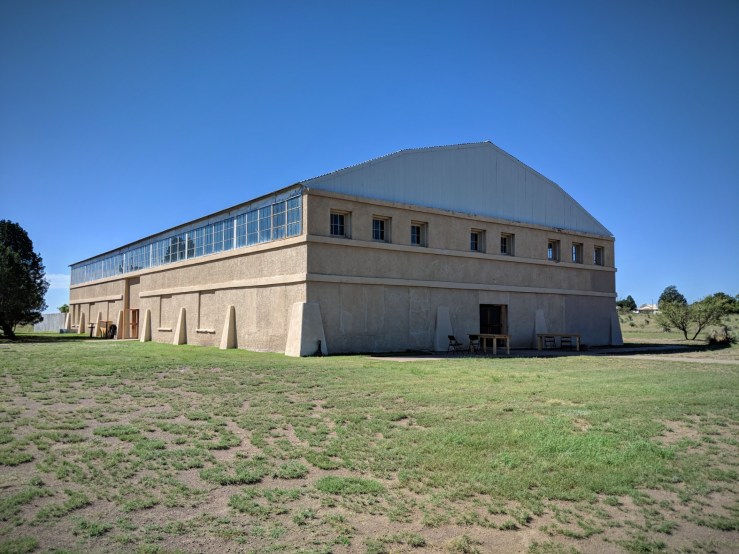“The Arena was built in the 1930s as a gymnasium for the soldiers at Fort D.A. Russell. After the fort closed in 1946, the gym floor was torn up for the wood, and sand was laid to provide an indoor arena for horses. In the mid-1980s, Judd restored the building, which was largely dilapidated. Judd left the long strips of concrete that had originally supported the wooden floor, and filled the intervening spaces with gravel. For practical considerations, Judd poured a large concrete area by the kitchen at the south end, and a smaller area at the north end of the building’s interior. These two areas comprise half of the total area of the building. Judd also added a sleeping loft and designed the outer courtyard, which includes areas for eating, bathing, and a barbecue.”↓↓