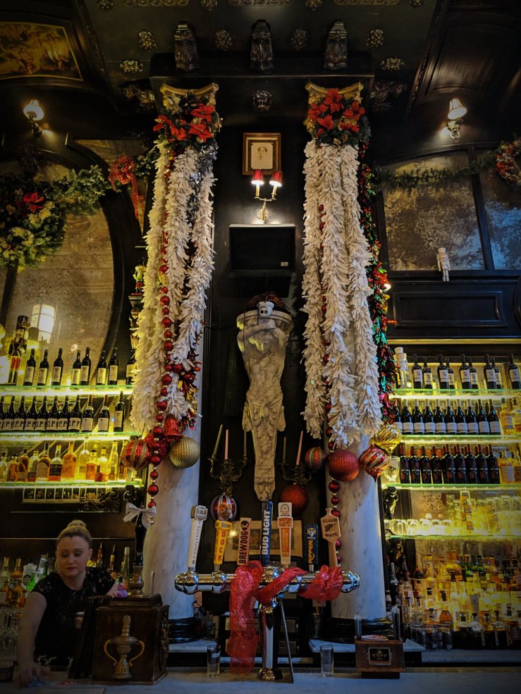 The antique marble bar and furnishings, the likes of which have not been seen in many years, were acquired from a Victorian mansion in Belfast, Ireland. Great care was taken to have them wrapped, packed and shipped across the Atlantic to their new home in the heart of New York City. [source: Lillie’s Victorian Establishment]