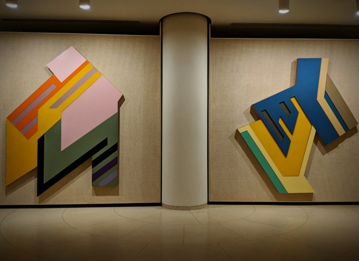 Oil and enamel on etched honeycomb aluminum with steel pipes, beams, and other metal elements