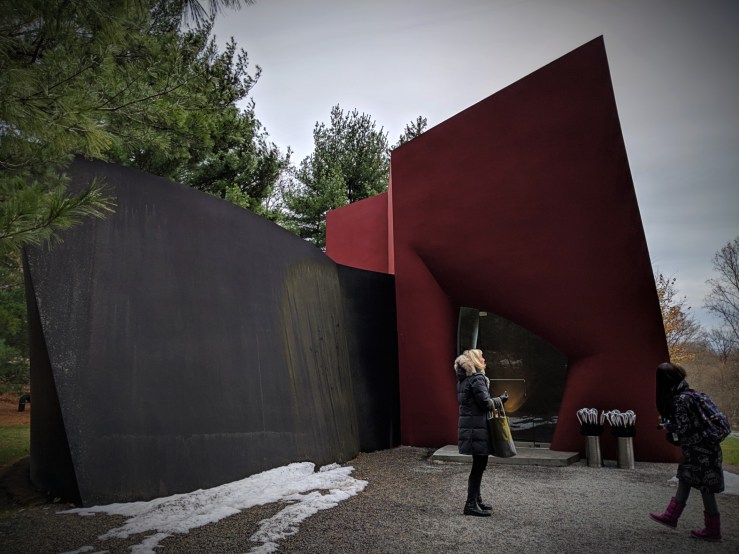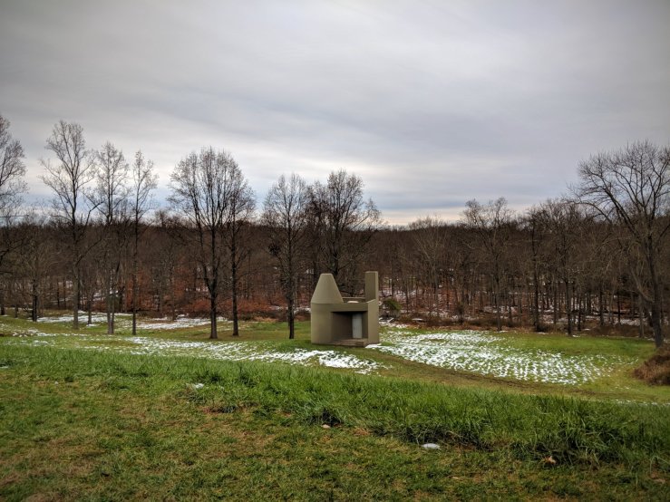 This building, constructed of modified gunnite, is the closest to Johnson’s thinking about sculpture and form at the end of his life – what he called the ”structured warp.”