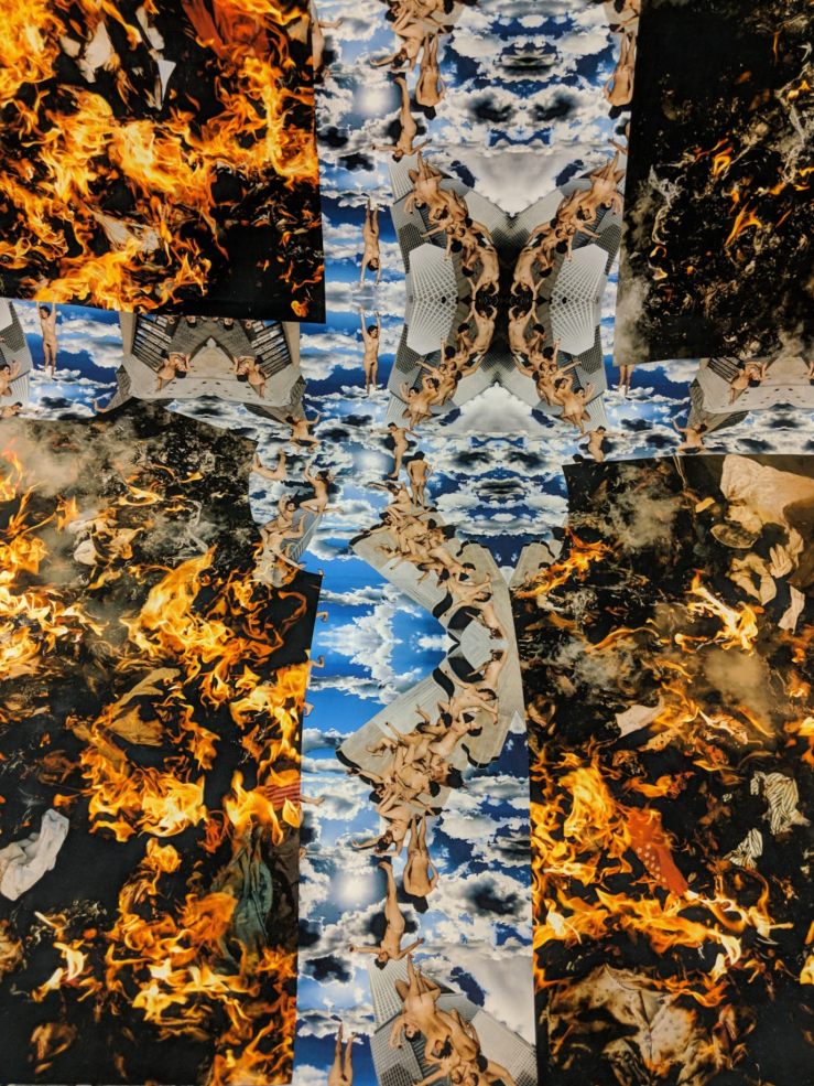 Ines Doujak, Not Dressed for Conquering: 01 Fires, 2015. Installation with various materials