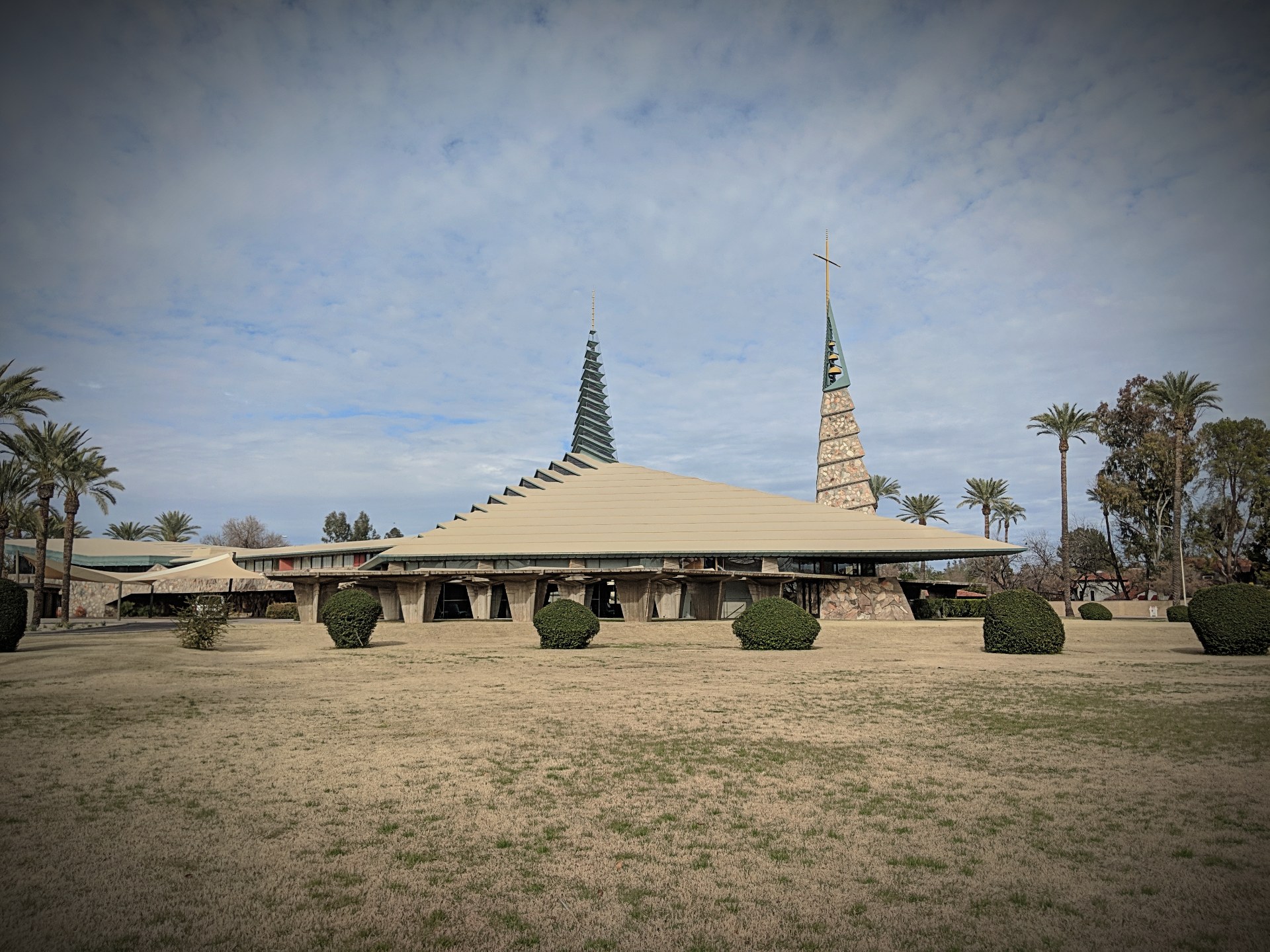 The addition of the baptistery and choir loft, as well as the 1979 addition of an administrative wing, completed by Taliesin Architects, are the only modifications to the original design.
