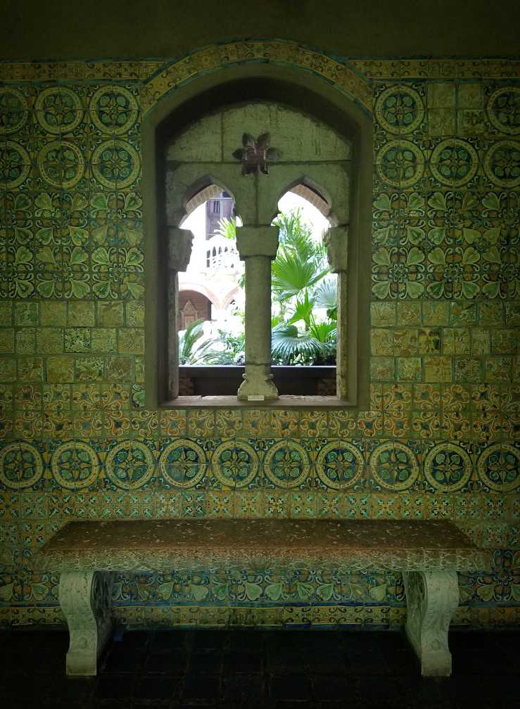 Isabella Gardner herself spent hours assembling the nearly 2,000 painted and glazed tiles into the appealing pattern we see today on the walls of the Spanish Cloister. Her friend, the artist Dodge Macknight, bought the tiles for her in Mexico in 1909 from the Church of San Agustìn.
