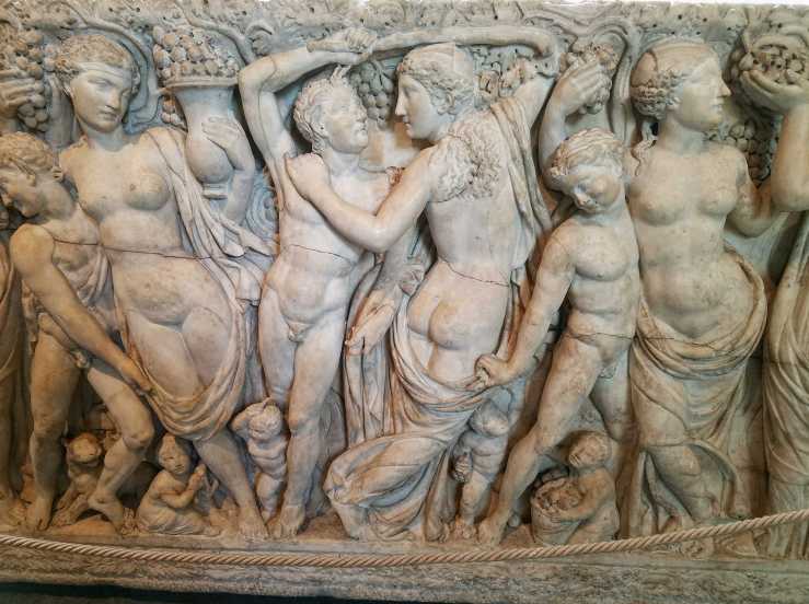 In terms of antiquarian fame—marbles copied in sketchbooks, paintings, or sculptures from the Renaissance on—the most important work of art in the Gardner collection, and perhaps of its type in America, is the sarcophagus with satyrs and maenads gathering grapes.
