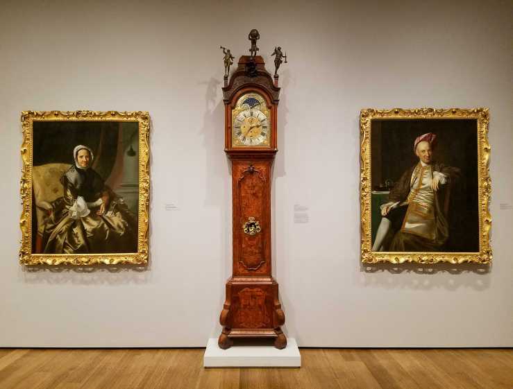 Paintings on the left & right side of the clock are by John Singleton Copley (1738-1815)