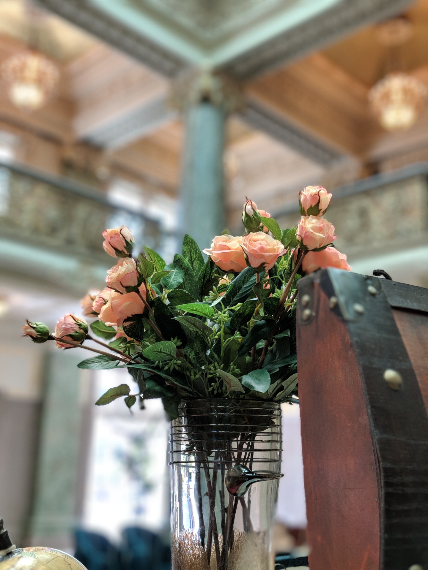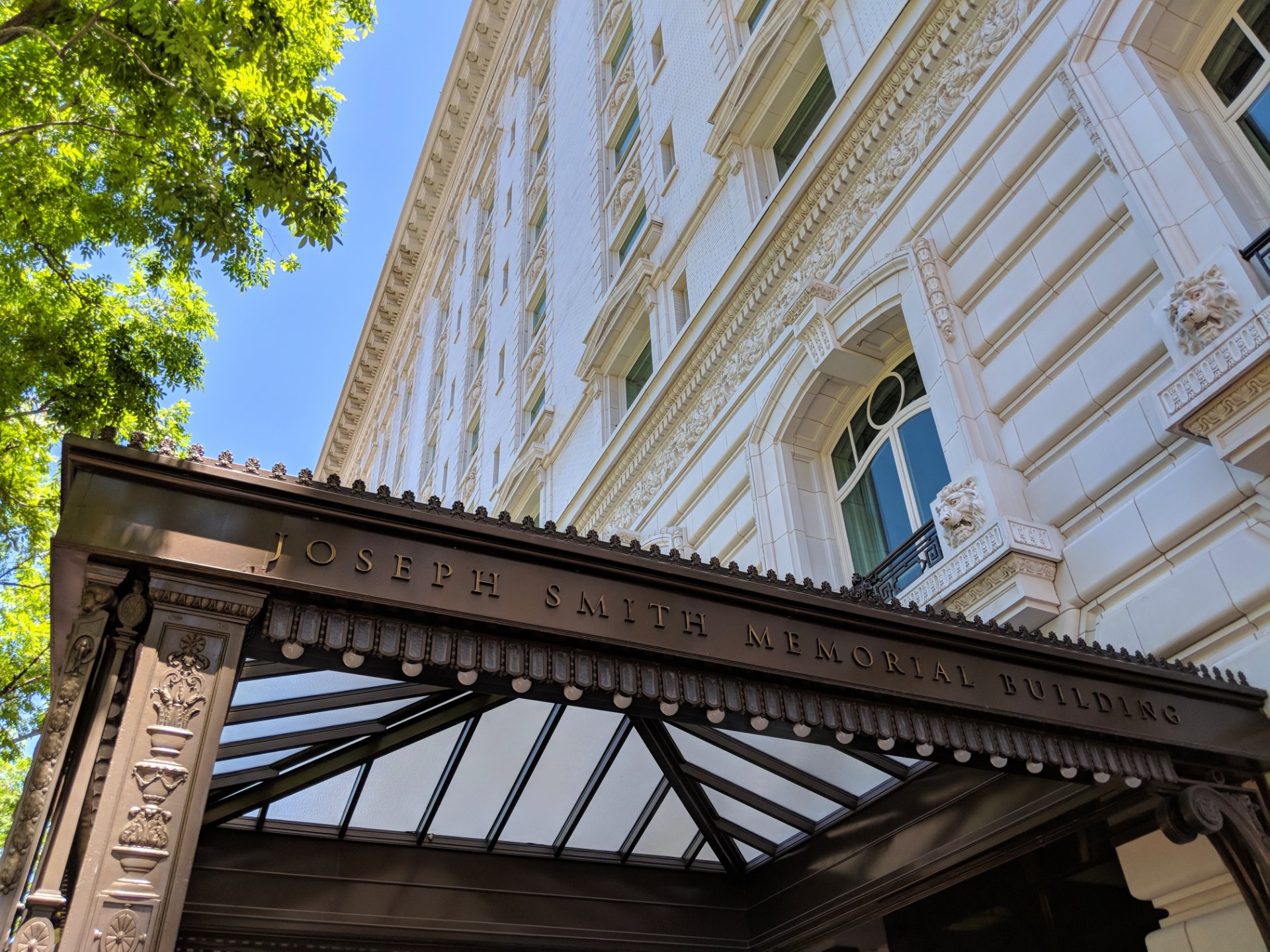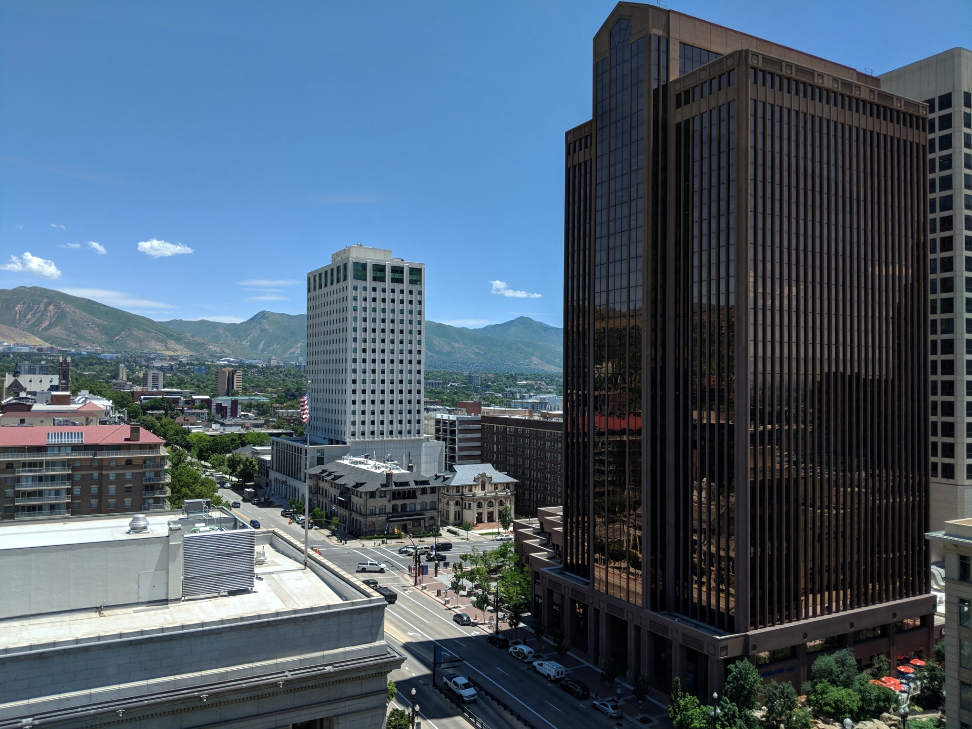 At the Joseph Smith Memorial Building with its ornately decorated lobby and panoramic views of the city and beyond. Inviting and welcoming, like Salt Lake City itself, with a live music performance, it is a grand piece of the city’s history, built in 1911 as The Hotel Utah.