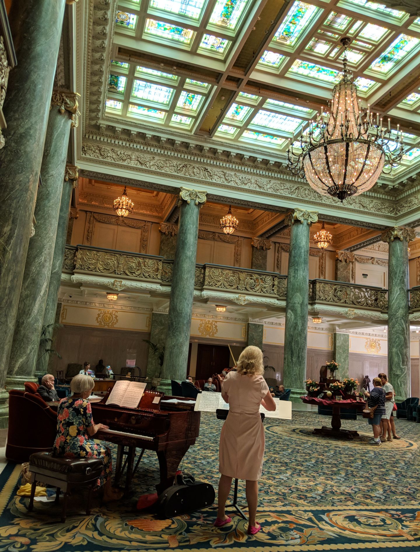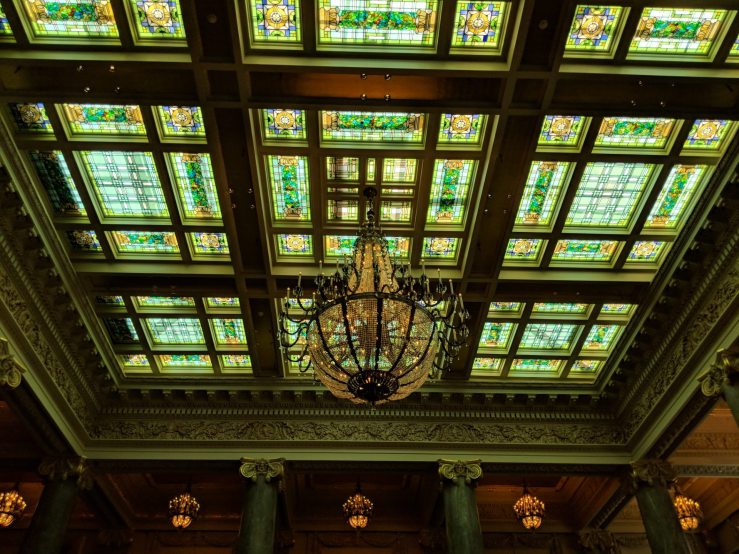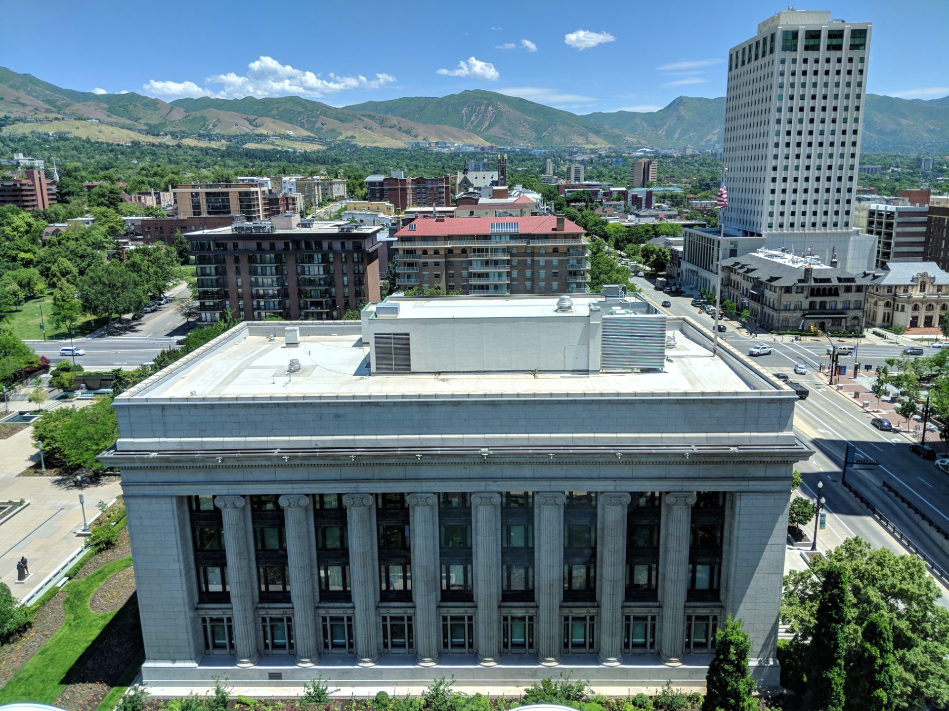At the Joseph Smith Memorial Building with its ornately decorated lobby and panoramic views of the city and beyond. Inviting and welcoming, like Salt Lake City itself, with a live music performance, it is a grand piece of the city’s history, built in 1911 as The Hotel Utah.