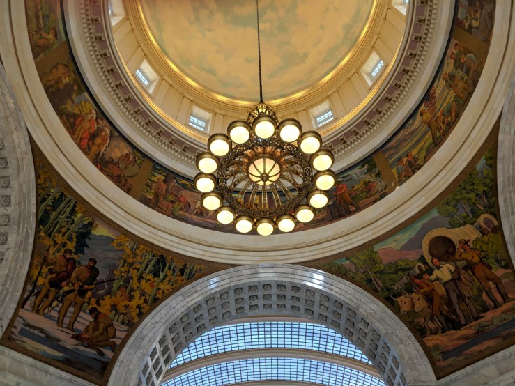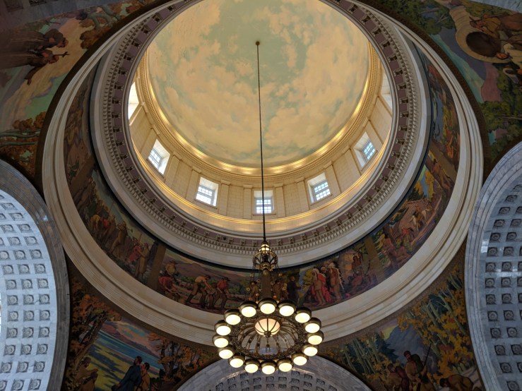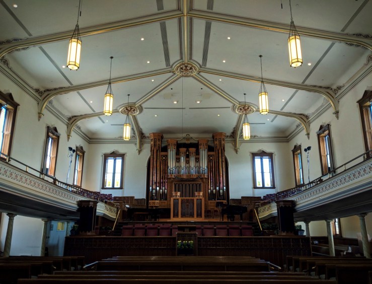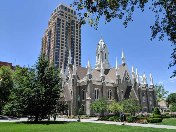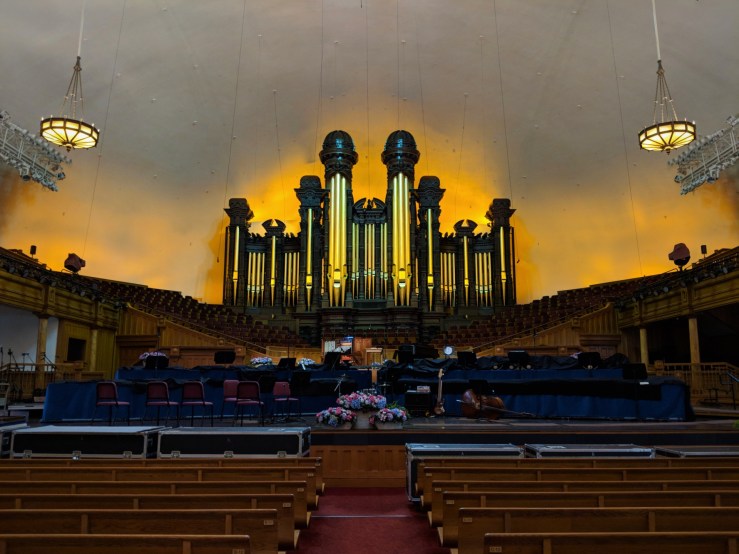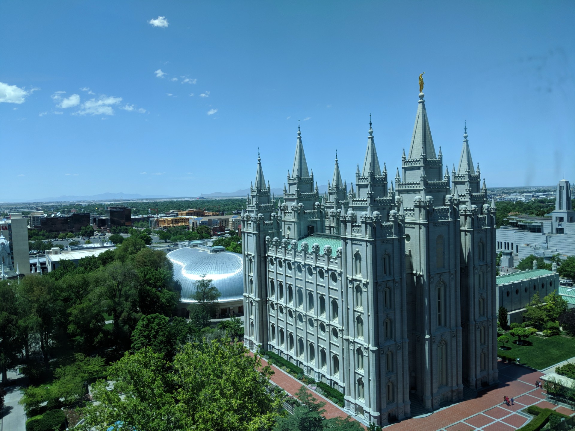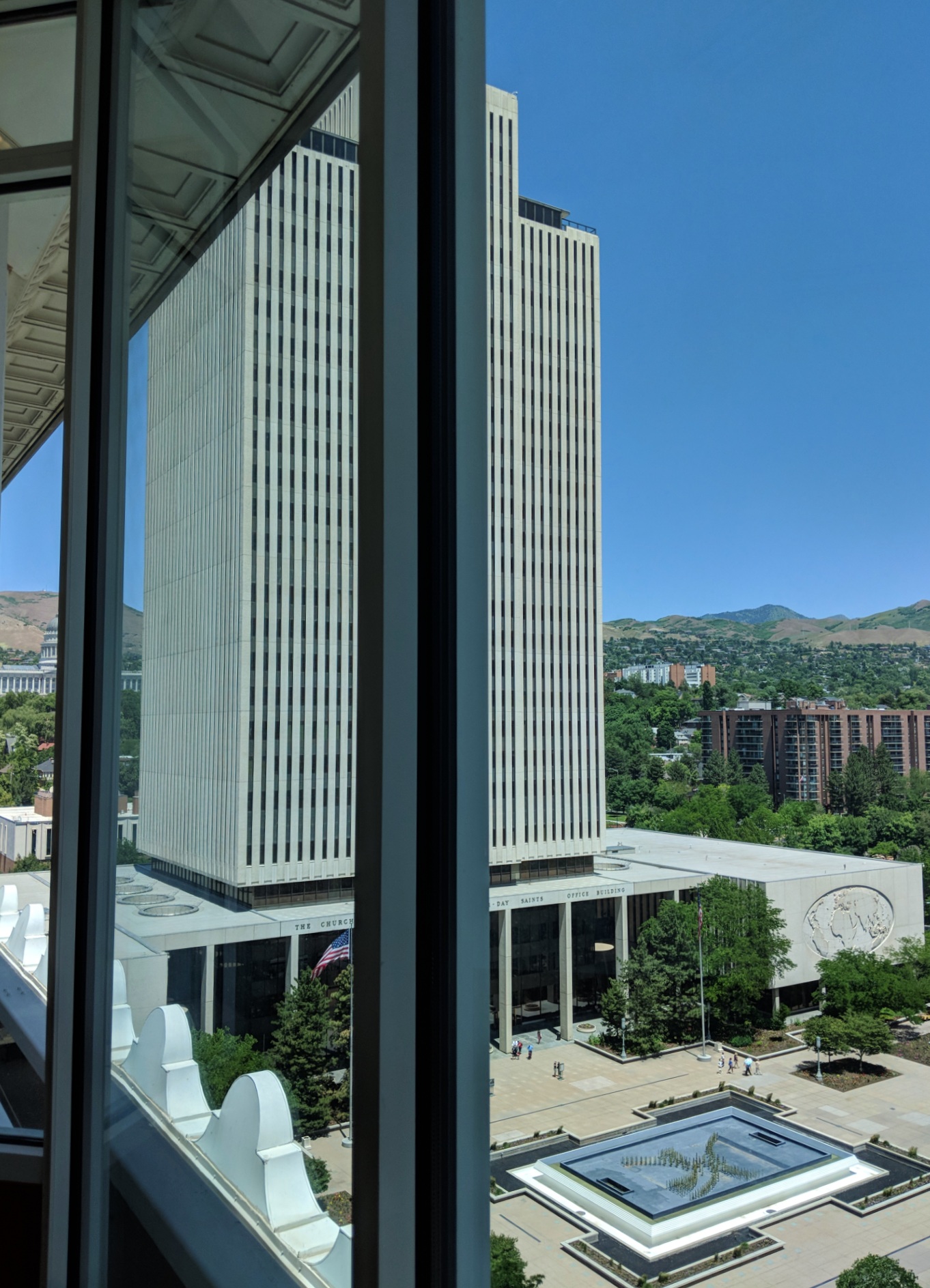 A day-and-a-half in Salt Lake City. Only a short stop, because Yellowstone may be something out of this world, but so are the Salt Flats, adding to the extraordinary natural phenomena we experienced in this part of the globe; a gift that keeps on giving. Our shoes and backpacks still white with salt, we set out to explore the city; starting, as you do, with the Temple Square and the Tabernacle for the daily 12 o’clock, 11.623 pipe organ recital, which is free and open to the public. Followed by views from the Assembly Hall, initially a place of worship, today a space mainly for recitals, lectures and tours. And a first glimpse of the Temple, the most sacred building in the city.
