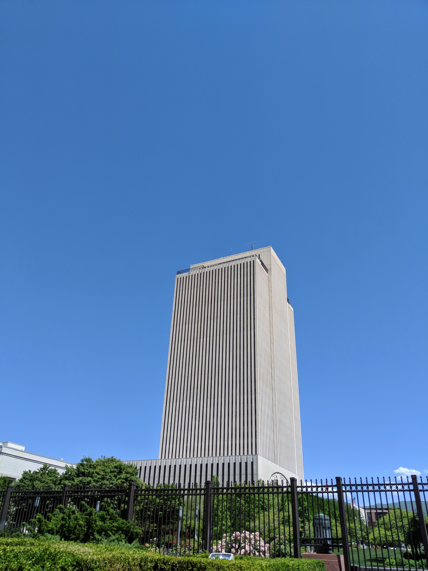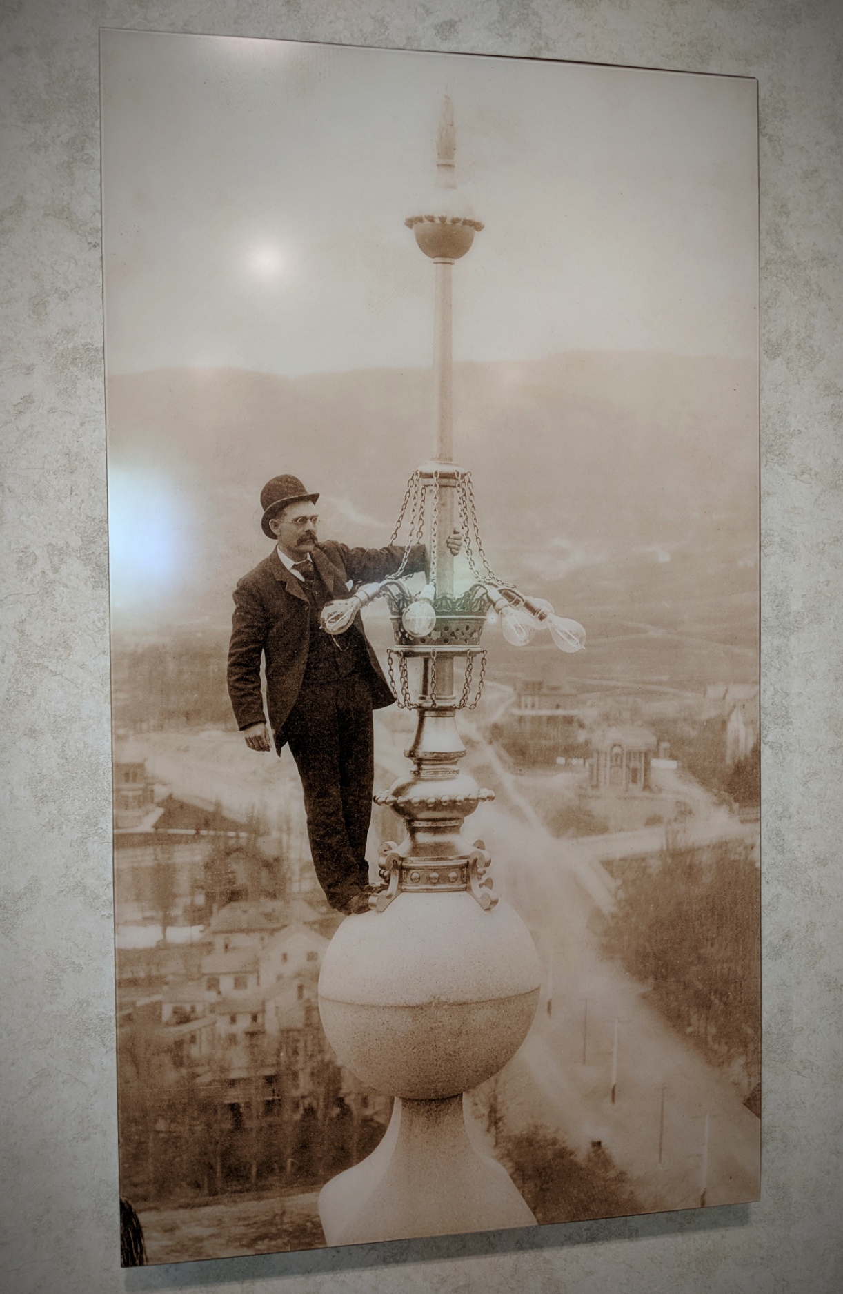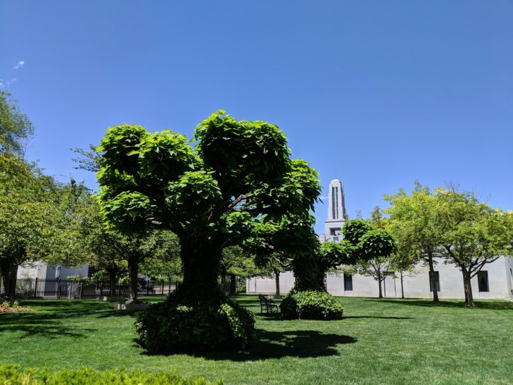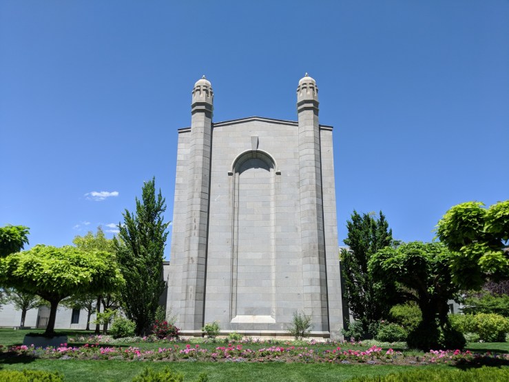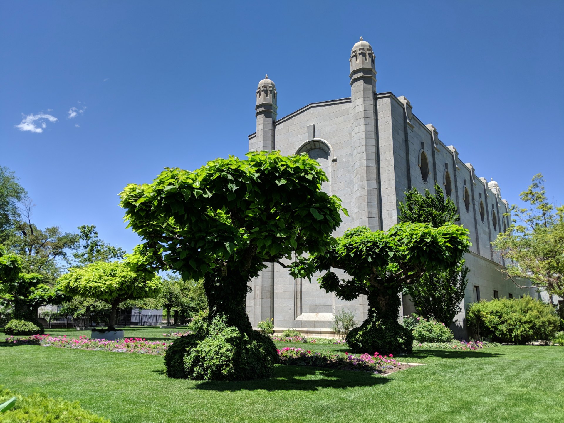 But, first, a view of the exterior of the grand Joseph Smith Memorial Building, the interior of which we explored yesterday, then the simple vertical lines of The Church of Jesus Christ of Latter-day Saints – Church Office Building, its minimal design in contrast to its convoluted name; and, finally, the most sacred of them all, the Salt Lake Temple; a place of worship and, as such, open only to members of the Church of Jesus Christ of Latter-day Saints, and certainly not to tourists. For the curious, there’s always the South Visitors’ Center, where a scale model of the temple and its interior is available for all to see. That’s where we’re going tomorrow. But, for now, please enjoy the views from the Temple grounds.