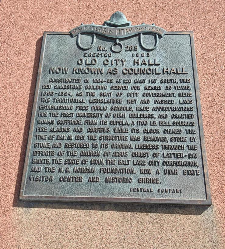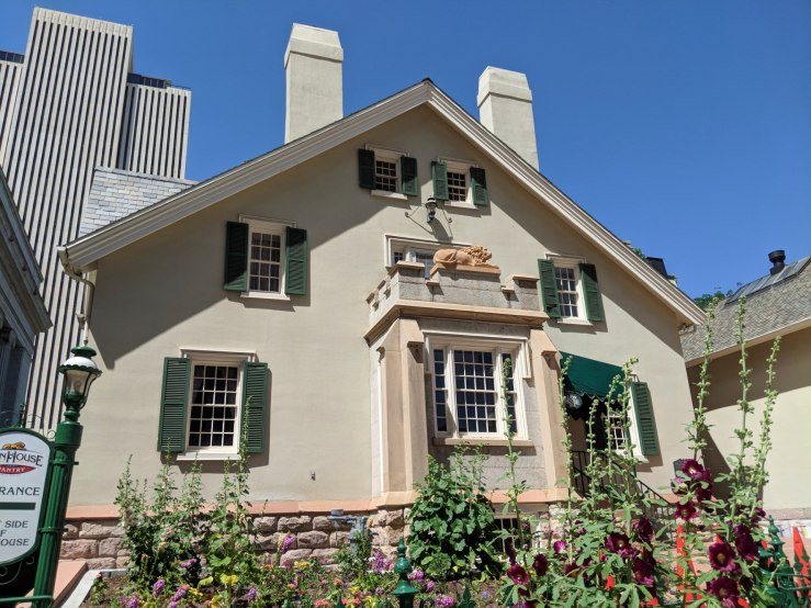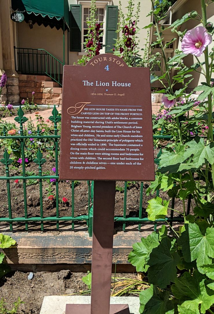 We walk past the Lion House first; a large residence built in 1856 by Brigham Young, second President of The Church of Jesus Christ of Latter-day Saints, to accommodate his extensive family. Brigham Young was a polygamist (a practice discontinued since the beginning of the 20th century) who fathered 57 children by his many wives, and was also father to a number of adopted, foster, and stepchildren. It is adjacent to his other residence, the Beehive House, built in 1854, which served as his primary residence as well as the offices for the Church and Brigham Young’s work as governor of Utah Territory.