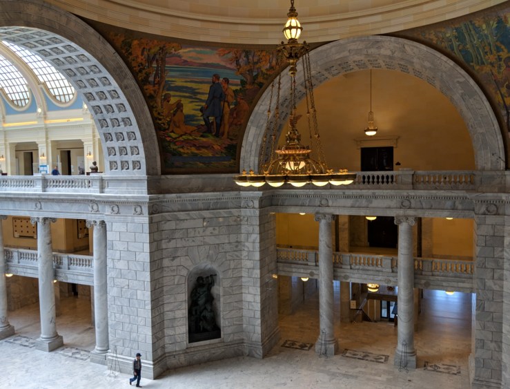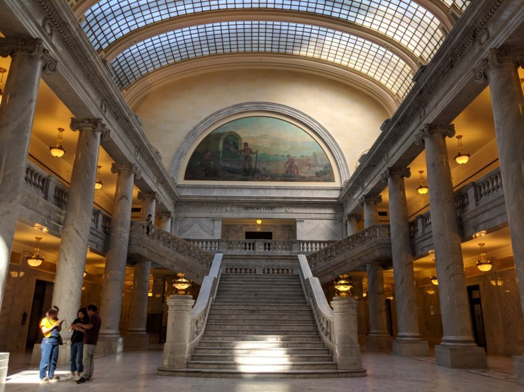 Walking past the Eagle Gate, which was originally built to mark the entrance to Brigham Young’s property (that included the Lion House and the Beehive House), on the ascending N. State St. which leads to the Capitol and is lined with some of the most beautiful houses in Salt Lake City.