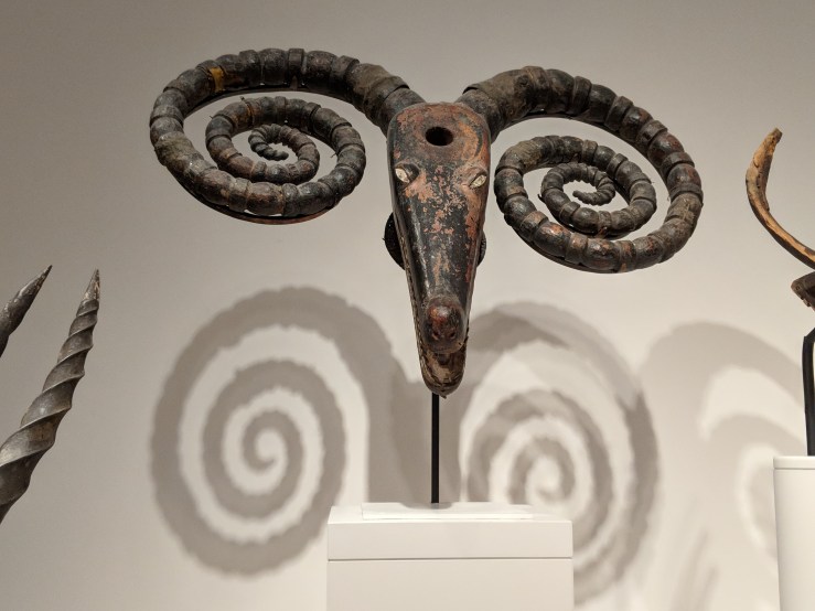 ”When death strikes in Ghana, those who can afford to choose a coffin, organize feasts and hire orchestras whose music helps see off the deceased in style. Mourning turns to celebration as the coffin is carried to all the places that the deceased would want to say goodbye to. Praise salutes, blessings, prayers and hymns fill the air as the coffin is taken to a burial site. This manner of acknowledging death is one of many that involve art. In some communities, a figure memorializing or in honor of the deceased is buried or burned, concluding one phase of the grieving process. In other communities, a portrait keeps the person’s image and memory alive forever. Certain artists depict death by capturing reactions to its news; others create imaginary visions of its presence.”