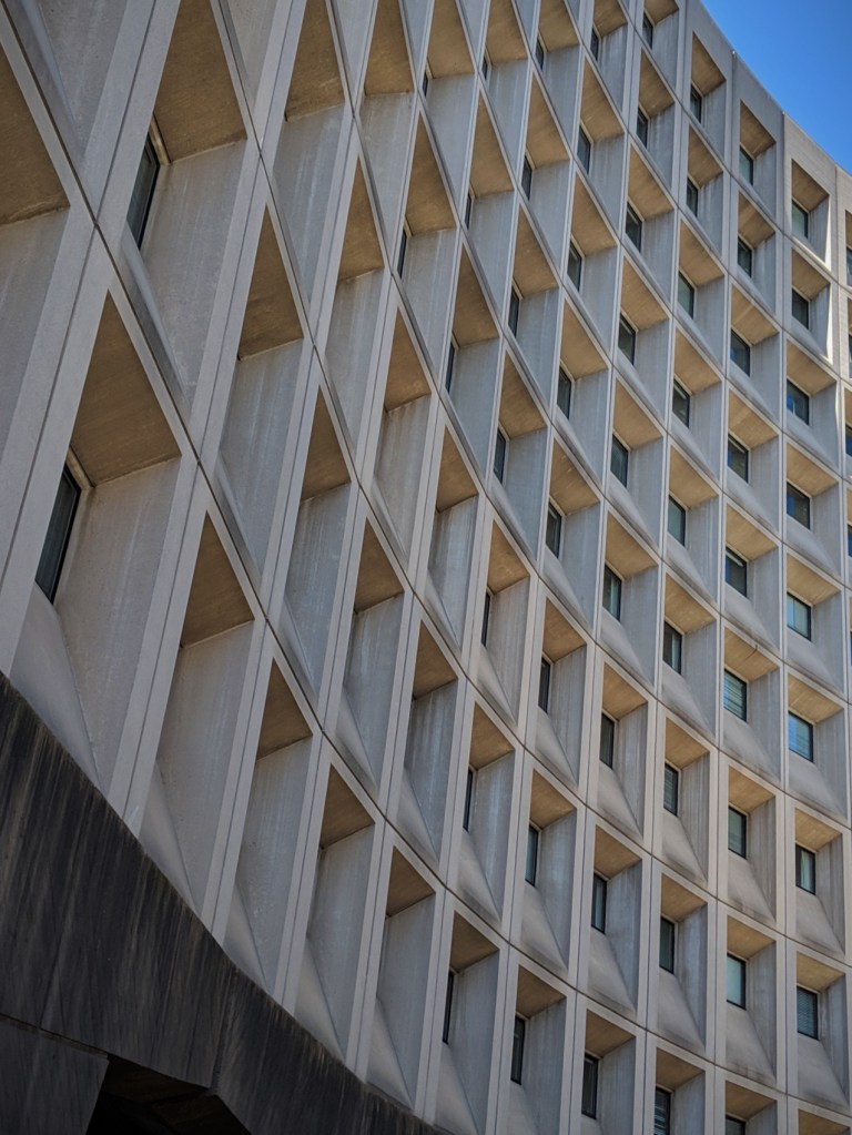 The building was renamed in 1999 to honor Washington native Robert C. Weaver, who served as Lyndon Johnson’s HUD Secretary from 1966-68 and was the first African American member of a Presidential cabinet. The building was constructed from 1965 to 1968 and includes a 1990 plaza redesign by landscape architect Martha Schwartz. [source: DC Historic Sites. Note: the site refers to Marcel Breuer as a French Architect, whereas he was actually Hungarian]