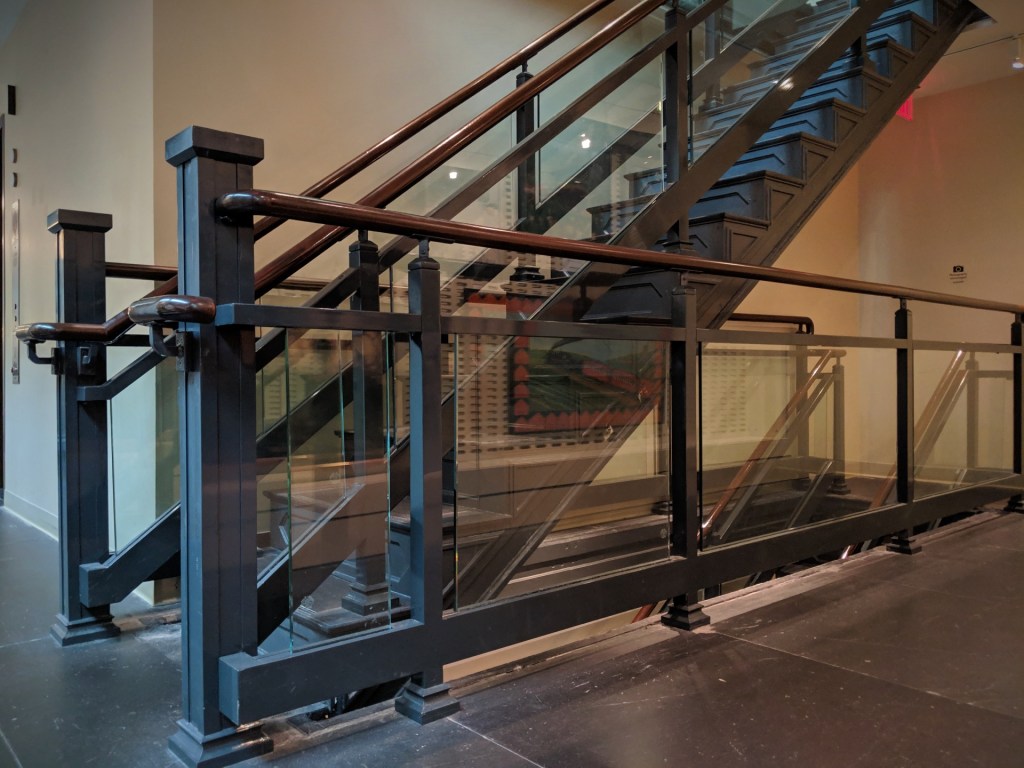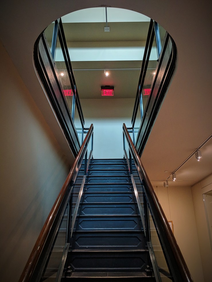 The industrial lines within the National Portrait Gallery, paired to perfection with the outlines of the United States on