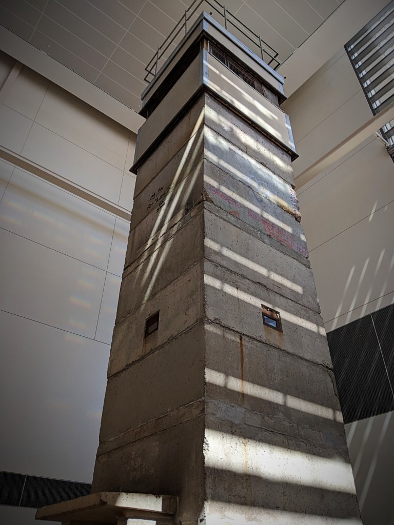 The guard tower was a gift in 1994 of the Checkpoint Charlie Museum in Berlin. Its transfer to the Newseum was facilitated by Rainer Hildebrandt, the museum’s director and founder. He feared the towers would be lost to commercial development. He was correct. Today only a few towers survive. This is the only one in the United States.