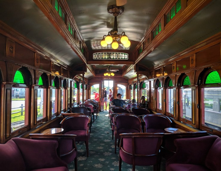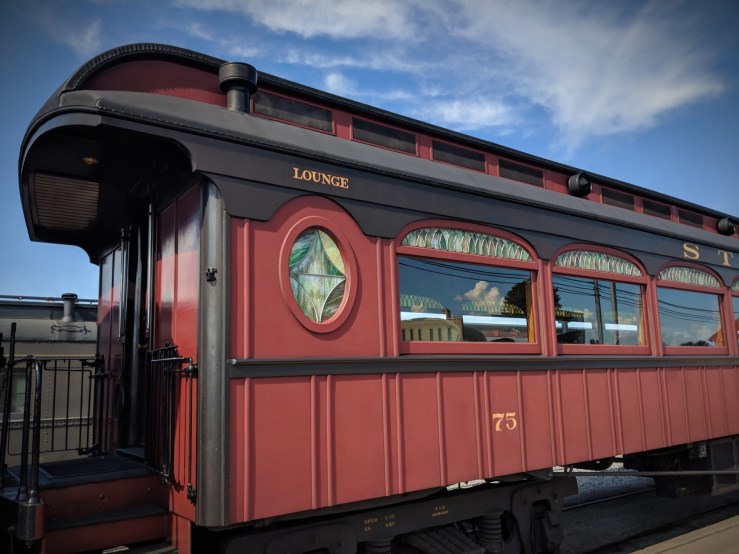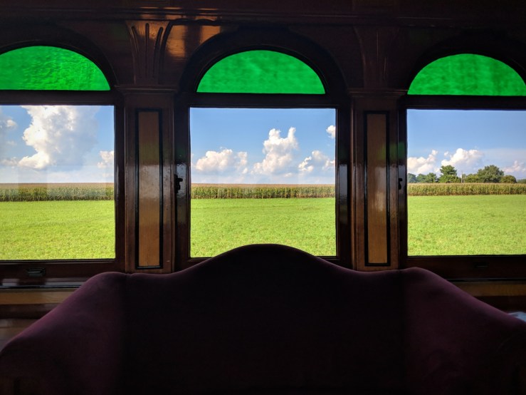 On our way back to New York, we hopped out of the car and into the luxury of a Strasburg Rail Road First Class Parlour with velvet sofas, upholstered armchairs and chilled wine, carried by a steam engine for a 45 minute trip through the fertile, lush Lancaster County where the time stood (almost) still.