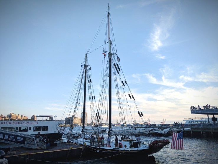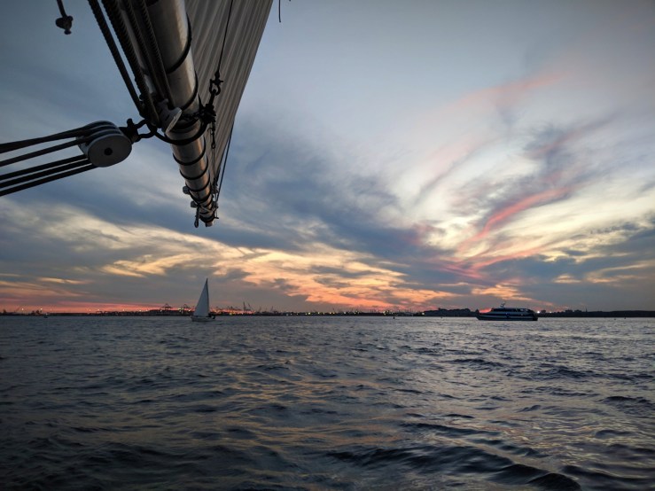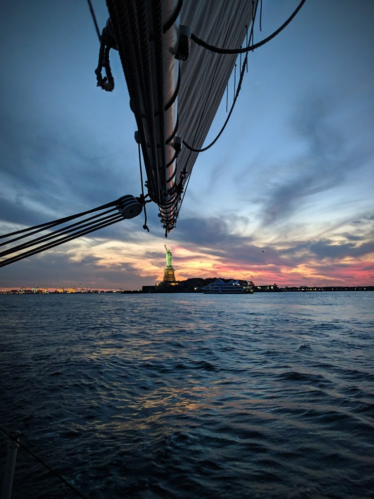 Watching Lady Liberty light up, the sky catching fire as the golden hour gave way to the blue and the blue turned to midnight; those two hours on the deck of an 1885 schooner were the most tranquil and peaceful we’d experienced in the City thus far.