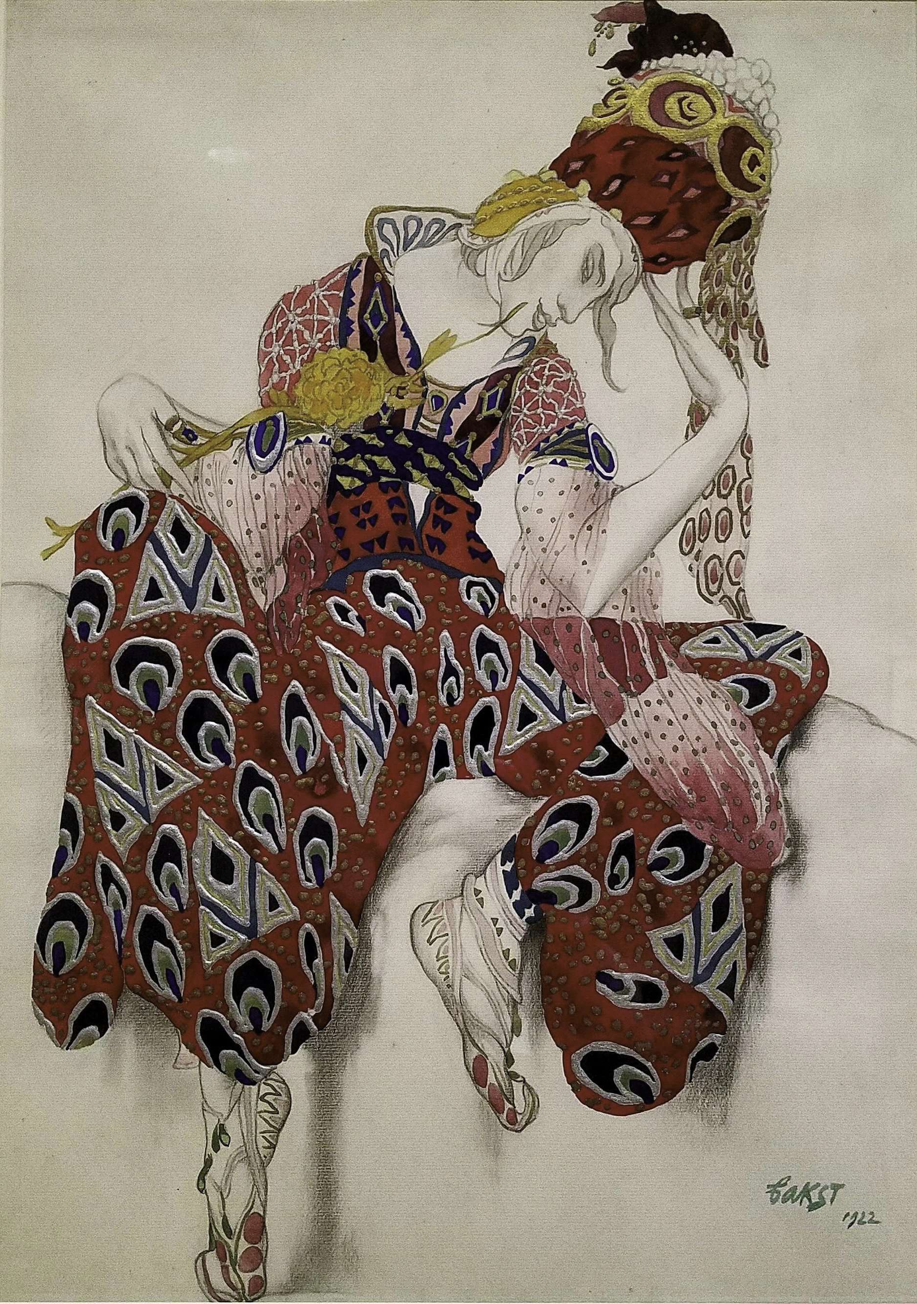 Costume Design by Léon Bakst for Vaslav Nijinsky in the Role of Iksender in the Ballet “La Péri” (The Flower of Immortality), 1922 (first performed in Paris, 1912). Watercolour and gold and silver paints over graphite