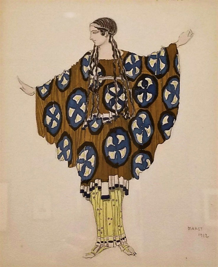 Costume Design for a Woman from the Village, for the Ballet ‘Daphnis and Chloé‘, performed at the Théâtre du Châtelet in Paris, 1912. Watercolour and graphite