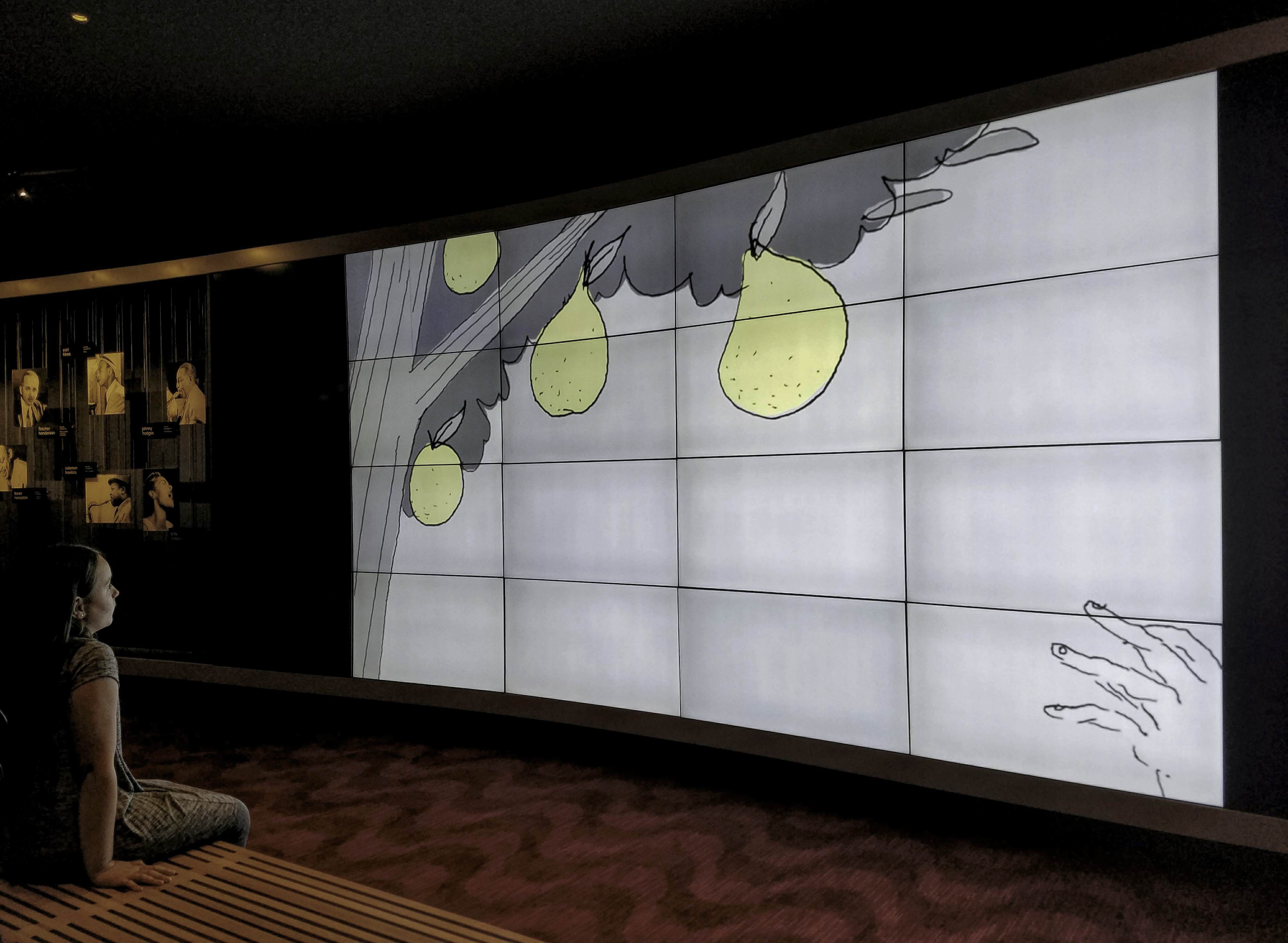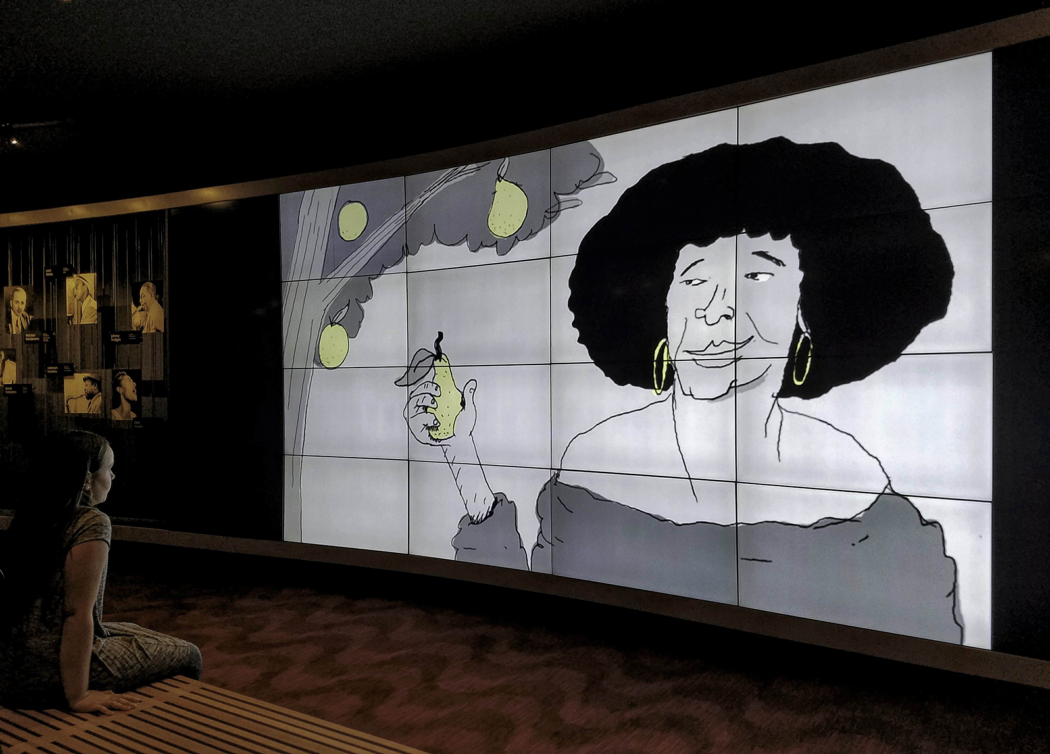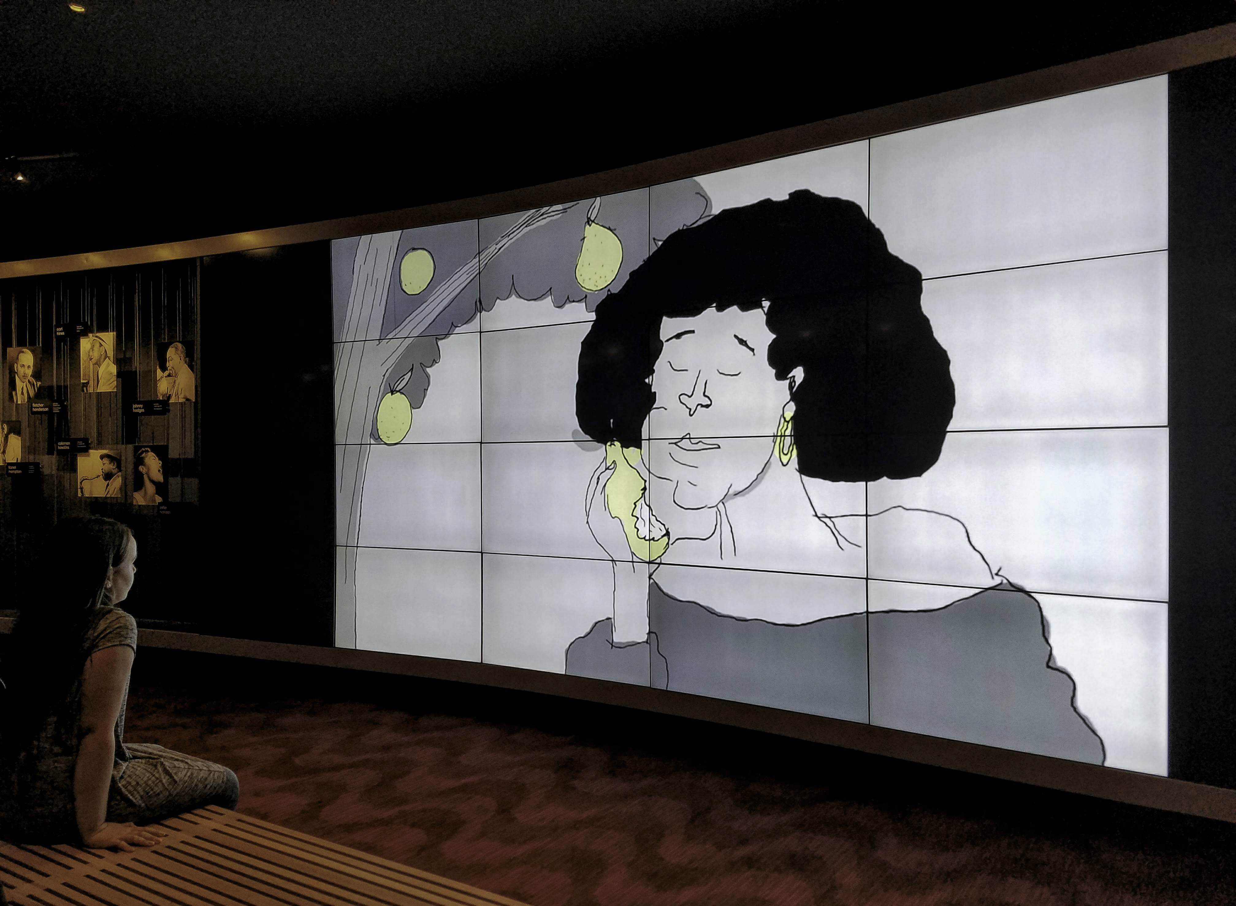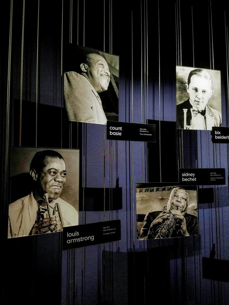Before looking into ”The Dark Mirror”, we lingered around the Ertegun Jazz Hall Of Fame, a space honouring the life and work of jazz legends with photos of the men and women who dedicated their lives to jazz, and a video series on the media wall, designed and animated by Nate Milton. Walking by, it occurred to me that I have yet to discover New York’s jazz scene. Now, a year-and-a-half later, I’m still in the dark and not sure where to start. If you have a recommendation, please do drop me a line in the comments – I would love to find out!