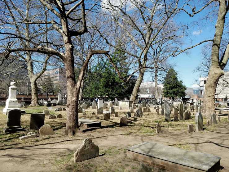Back in Philadelphia, on to more agreeable sights, starting with Benjamin Franklin’s resting place, in Christ Church Burial Ground. The great man sleeps close to other patriots and prominent figures like Francis Hopkinson, designer of the first official American flag: