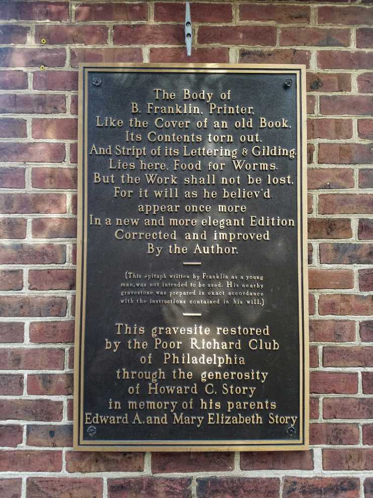 Finally, Mr. Franklin. He was just 22 when he wrote his epitaph. I wonder what made a man think about writing an epitaph at such a young age:
