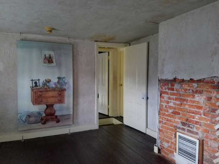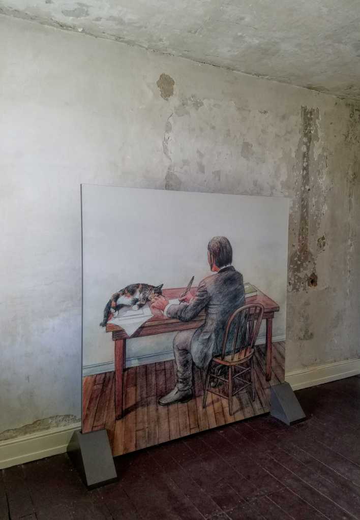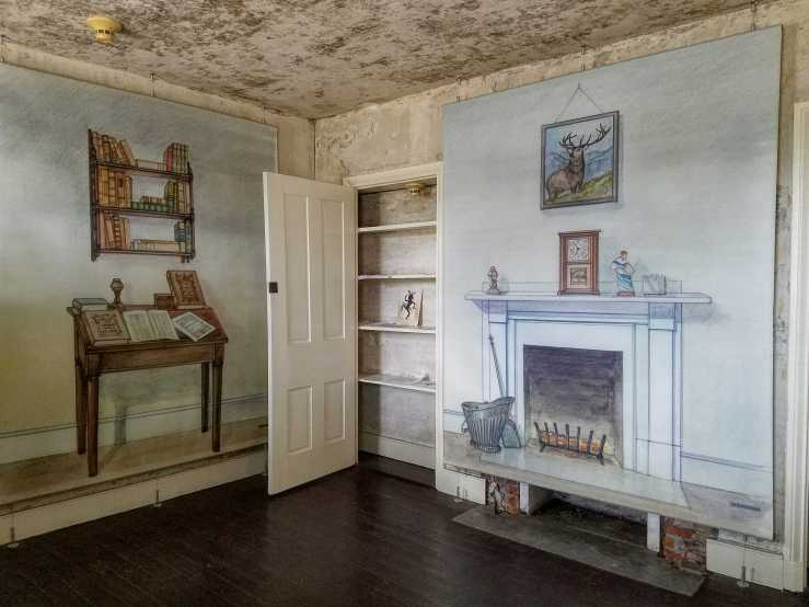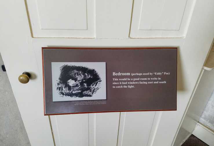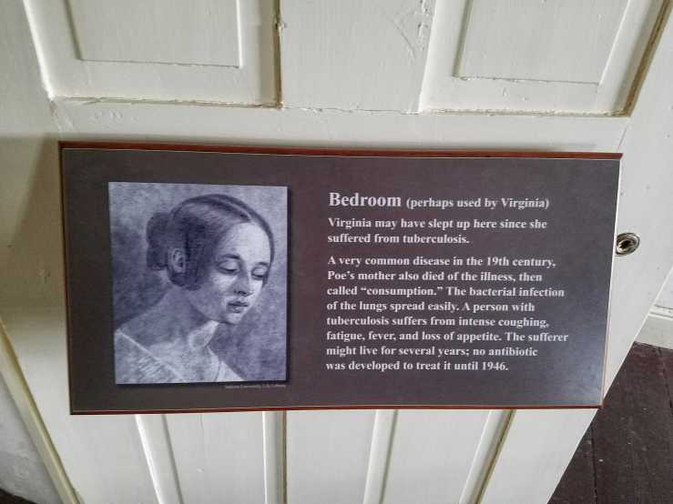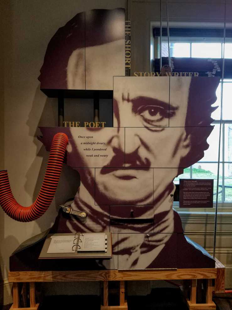 For all its charm and history, Elfreth’s Alley was not our destination – just a passage to Philadelphia’s most poetic home. A thirty minute walk beyond the Expressway to an area I wouldn’t like to find myself after dark, and there it was. Poe lived in different houses during his six-year residence in Philadelphia, but this is the only one still standing. Poe lived here with his beloved wife Virginia and devoted mother-in-law Maria Clemm who was an excellent housekeeper, a great help to the couple especially while Virginia was in declining health. The house is stripped bare; no objects or furniture belonging to Poe because nothing was left behind when the family moved on to their next home in the Bronx. Only drawings and period photographs indicate how it would have looked back then.  Narrow staircases and tiny rooms always make me wonder how much we and our living spaces have expanded over the years.