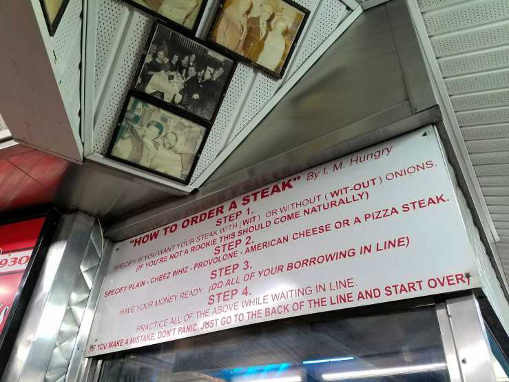 In 4 easy steps.  There are a lot of good addresses for Philly cheesesteaks nowadays but if you value tradition, there can be only one: Pat’s King of Steaks. Original home of the steak sandwich invented by its founder, Pat Olivieri, in 1930, the place is still owned by the same family. The sandwiches (we got them wit) are utterly delicious.Philadelphia