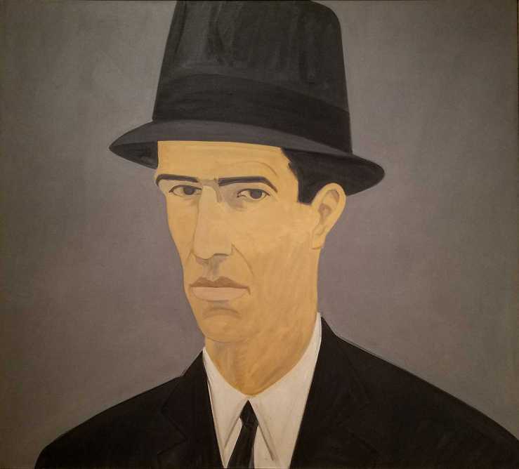 A stylish gentleman Mr. Katz is in his business suit and hat – the clean, sleek lines of his self-portrait devoid of all superfluous accentuating his steady, direct gaze.