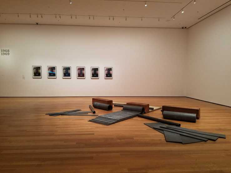 The artist took rolled lead sheets, wood beams, marble slabs, and steel piping, and then used a saw to slice them through. The objects were then arranged on the floor as they appeared directly after having been cut.