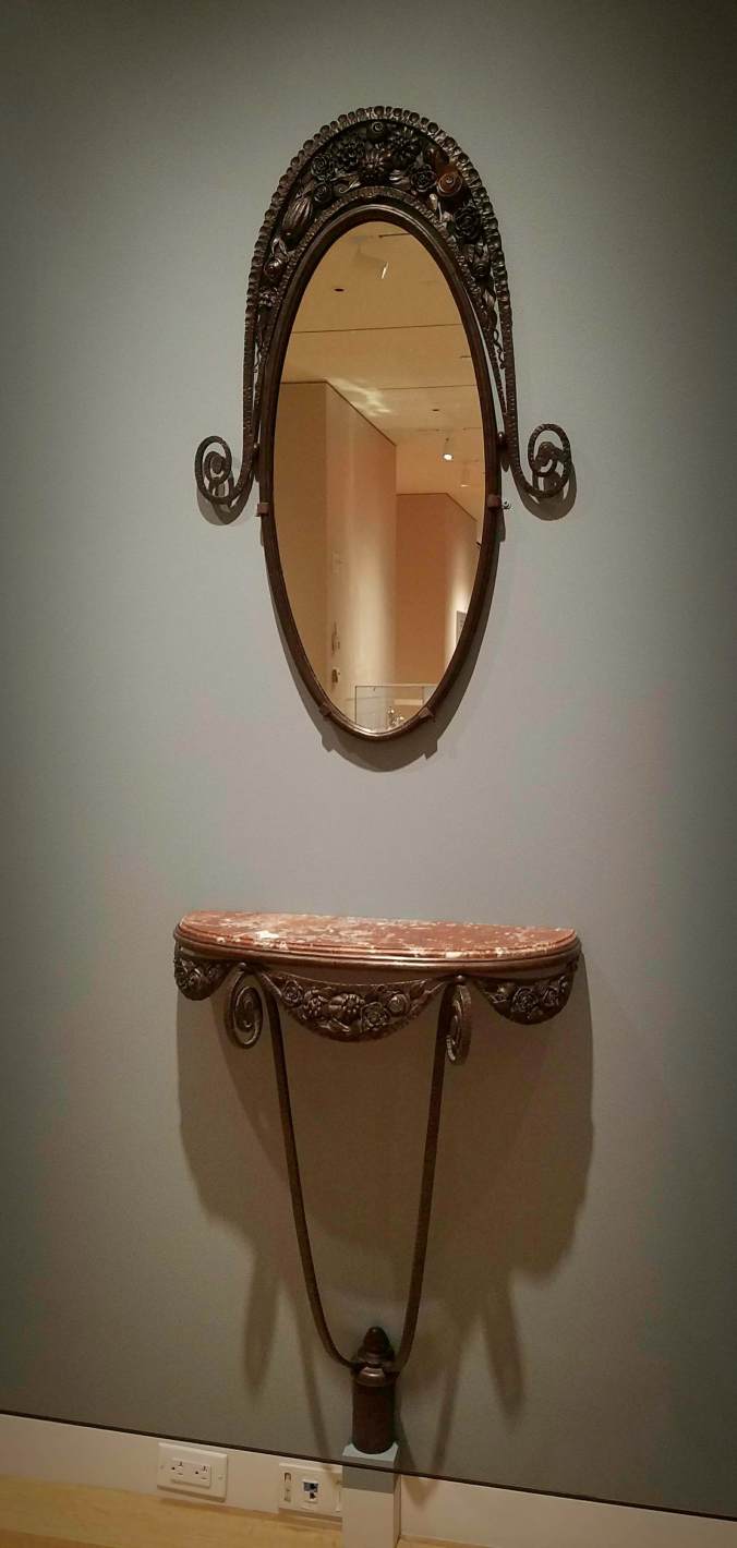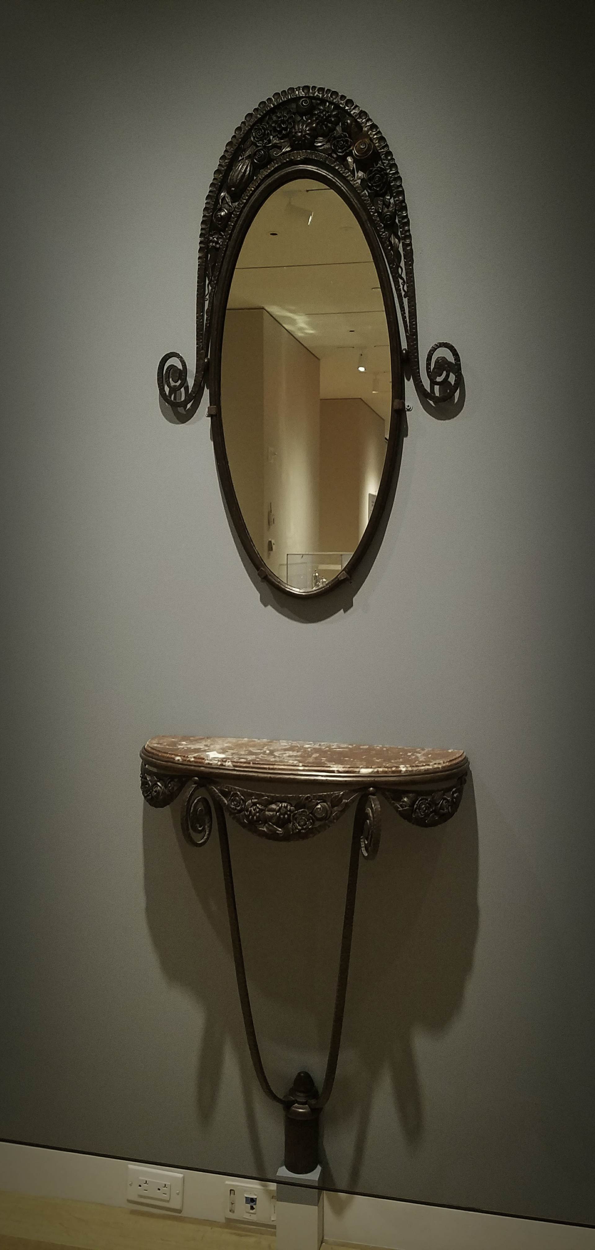 Mirror, ca. 1930, designed by Paul Fehér. Wrought iron, brass, silver, gold plating, glass