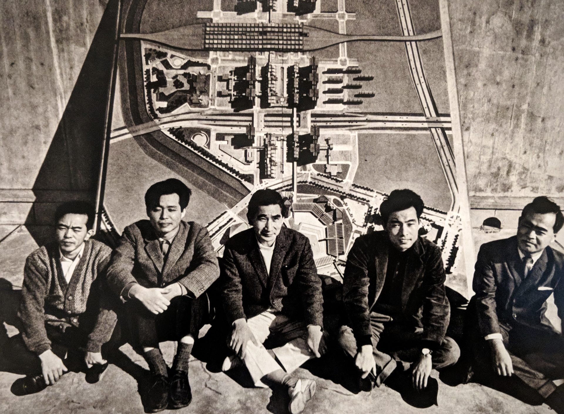Kenzō Tange and team, working on the Skopje master plan, 1965