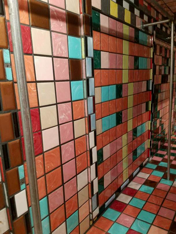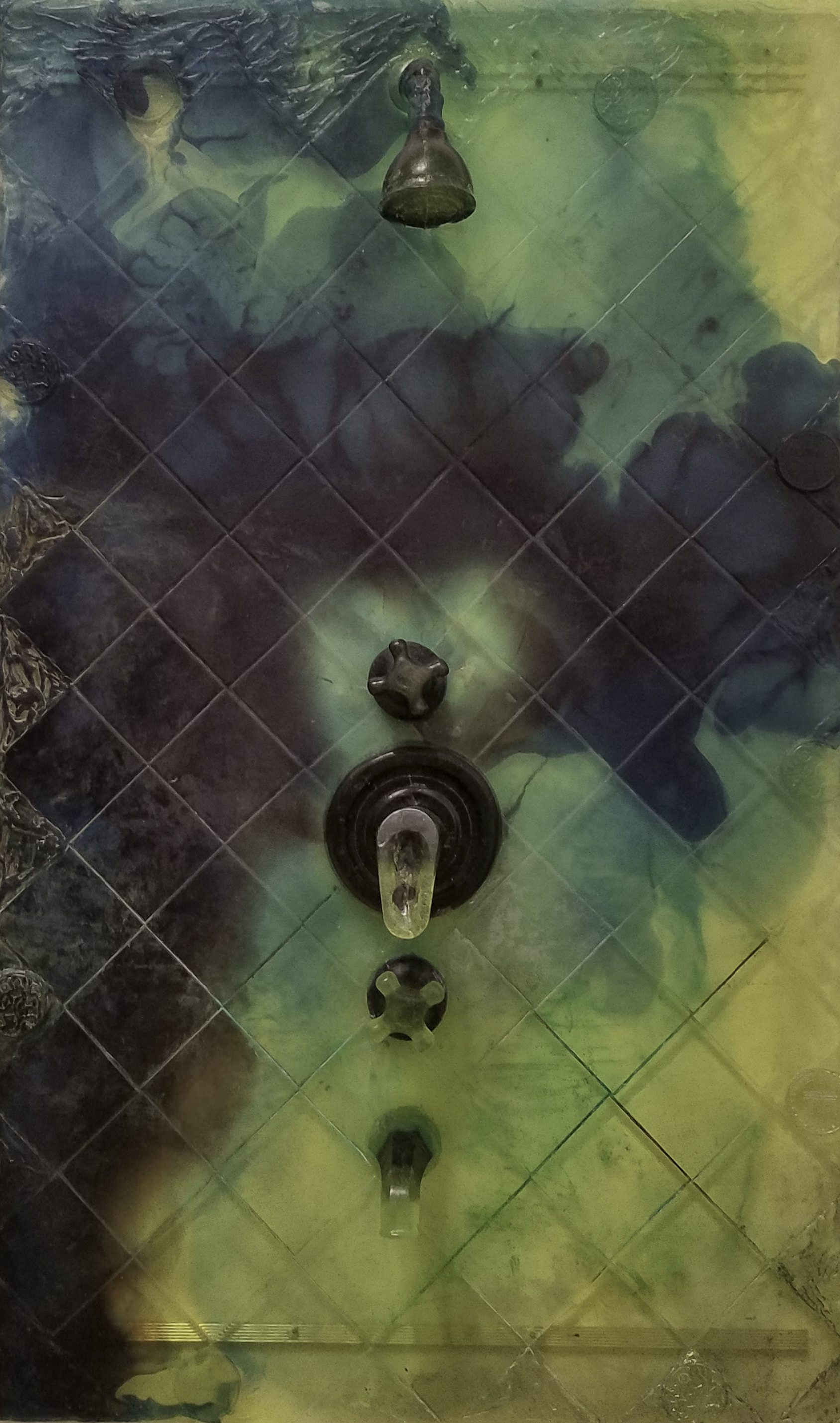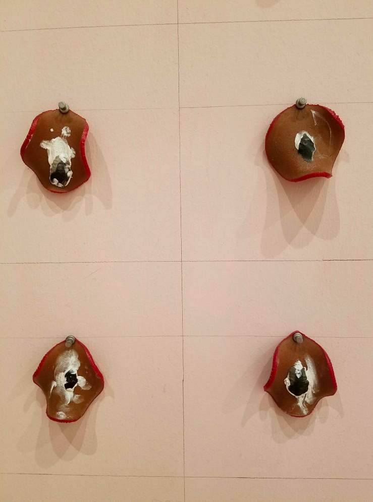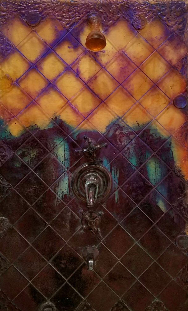 The Meat Grinder’s Iron Clothes, 2017 was a site-specific installation using insulation foamboard, extruded polystryrene, epoxy resin, carpet, vinyl, fabric, acrylic paint, spray paint, nail polish, plastic, altered found objects and mirror.