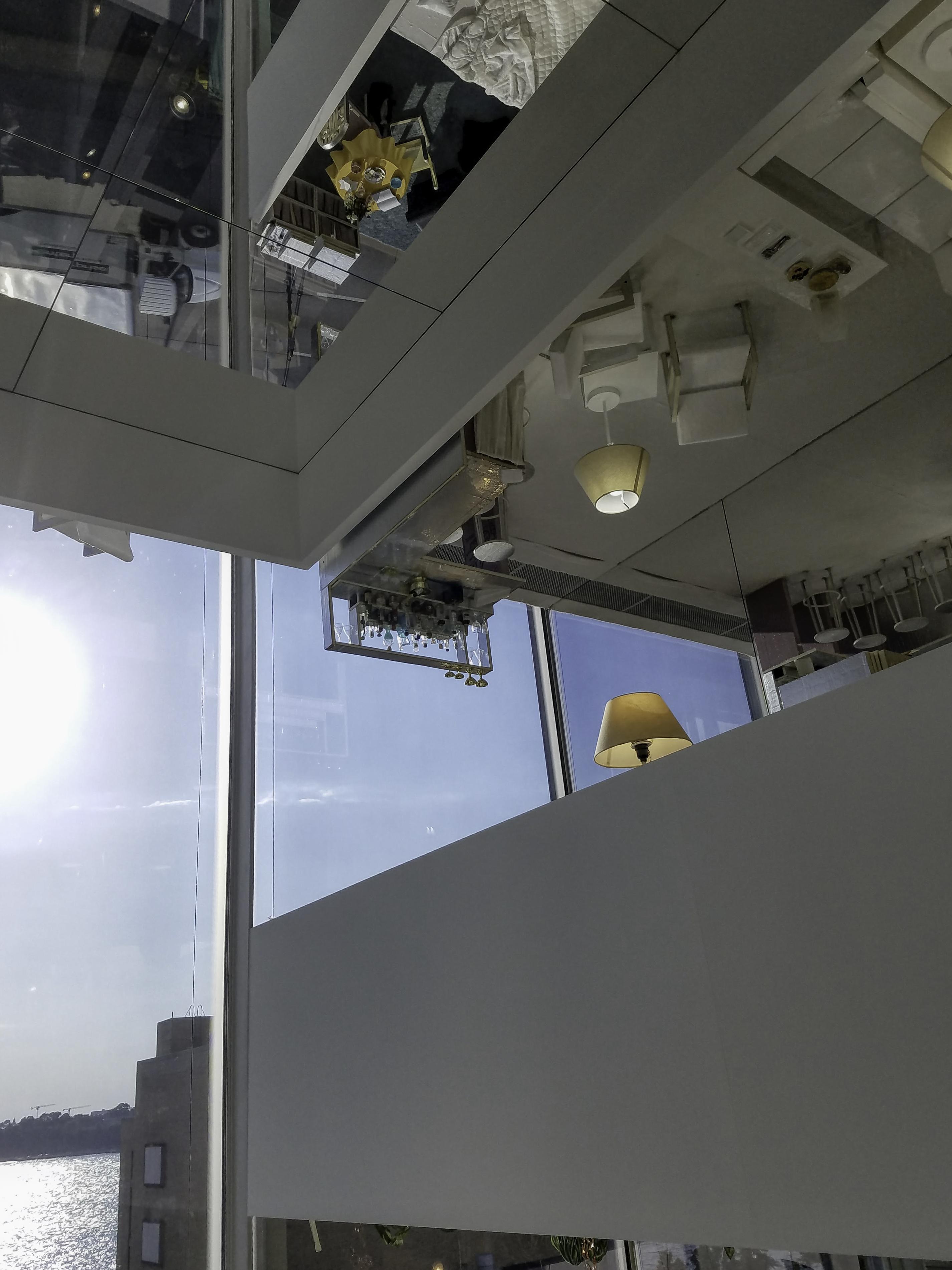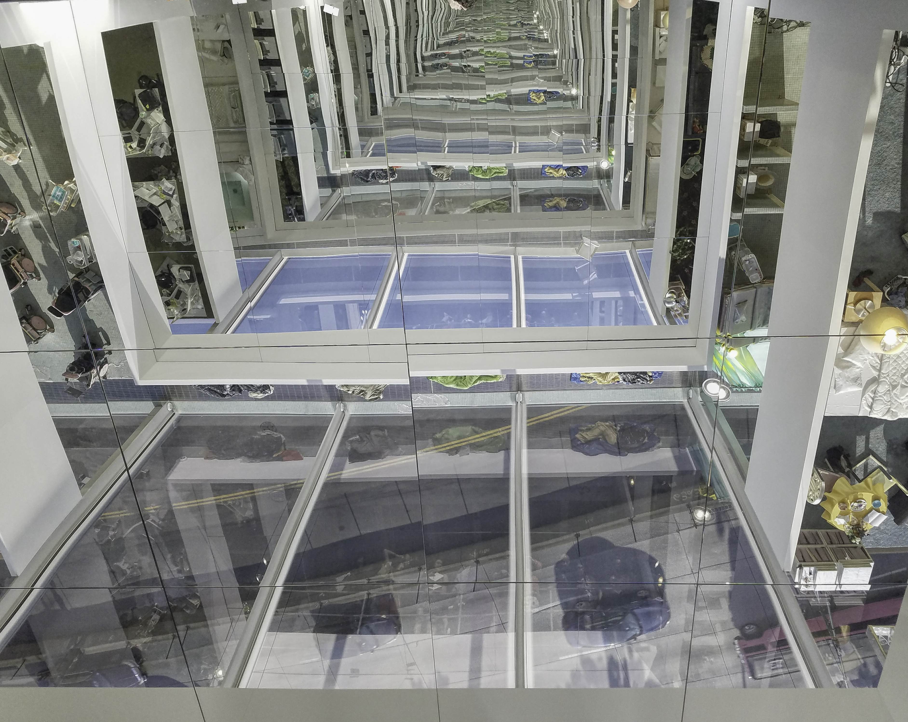 Paired with the reflective, illusionary, upside down, spacey architecture by Samara Golden.
