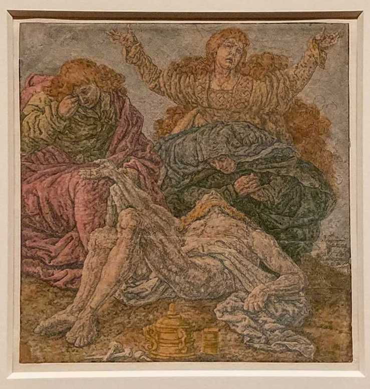This poignant depiction, one of the artist’s few biblical subjects, copies a woodcut created more than a century earlier by Hans Baldung. Segers closely replicated the figure group but removed the suggestions of the cross behind them, adding instead a small cluster of buildings on the bottom right. The artist overpainted this impression with opaque watercolour and oil paint, making it his most colourful etching.