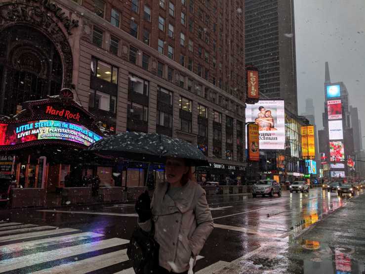 It’s been almost three years since we came to live next to Times Square – just off, still ”too close for comfort”. I’ve been crisscrossing Broadway every working day of the week, at least twice; sometimes during the weekends too. I have seen it by day and by night, sweating in the sizzling summer heat and glimmering after the rain, covered in snow and confetti, flooded with crowds and quasi-empty (yes, it does happen – rarely, but it does). But seeing it through Mr. Klein’s lens adds a whole new poetic dimension to the reality of Broadway, as we know it today.