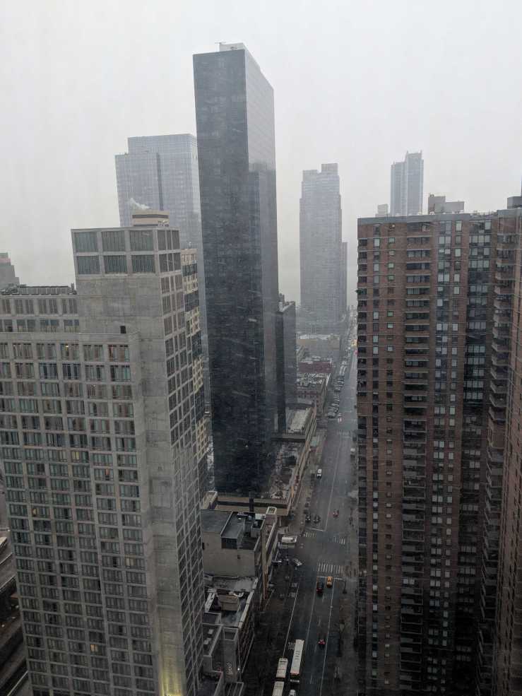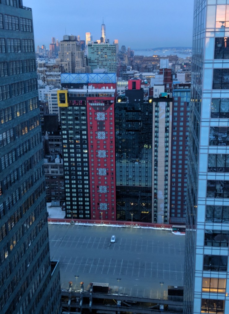 I’m not talking about me, oh no, even though with this view I often feel like a princess in her tower. It’s that rooftop looking down between the buildings that looks like a public parking but is usually empty, save for a car or two. It’s not often one can find an empty spot of this size in the heart of Manhattan, where every available inch is too valuable to be left unused.