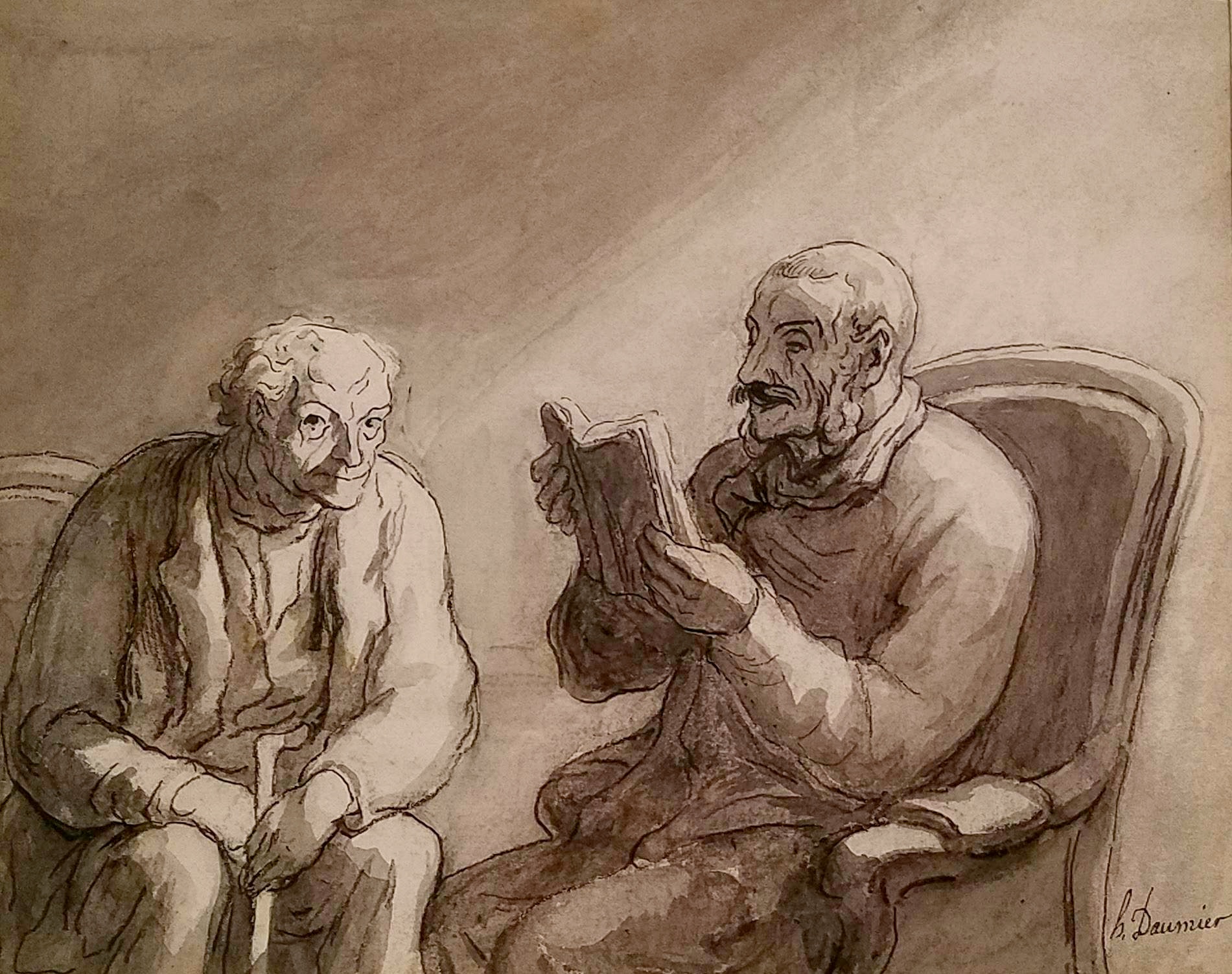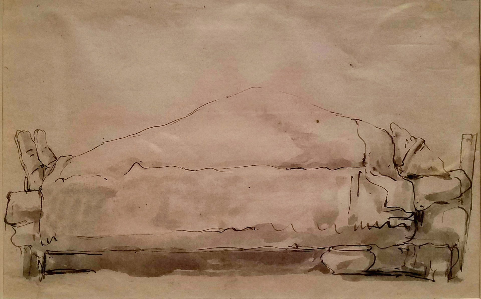 Black chalk and graphite, black and brown wash with white and grey opaque watercolour