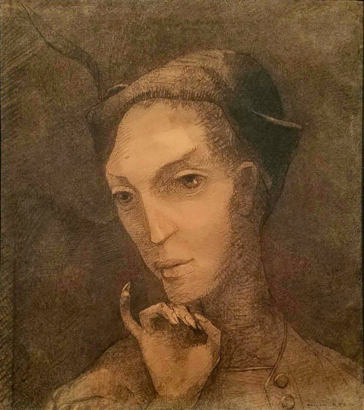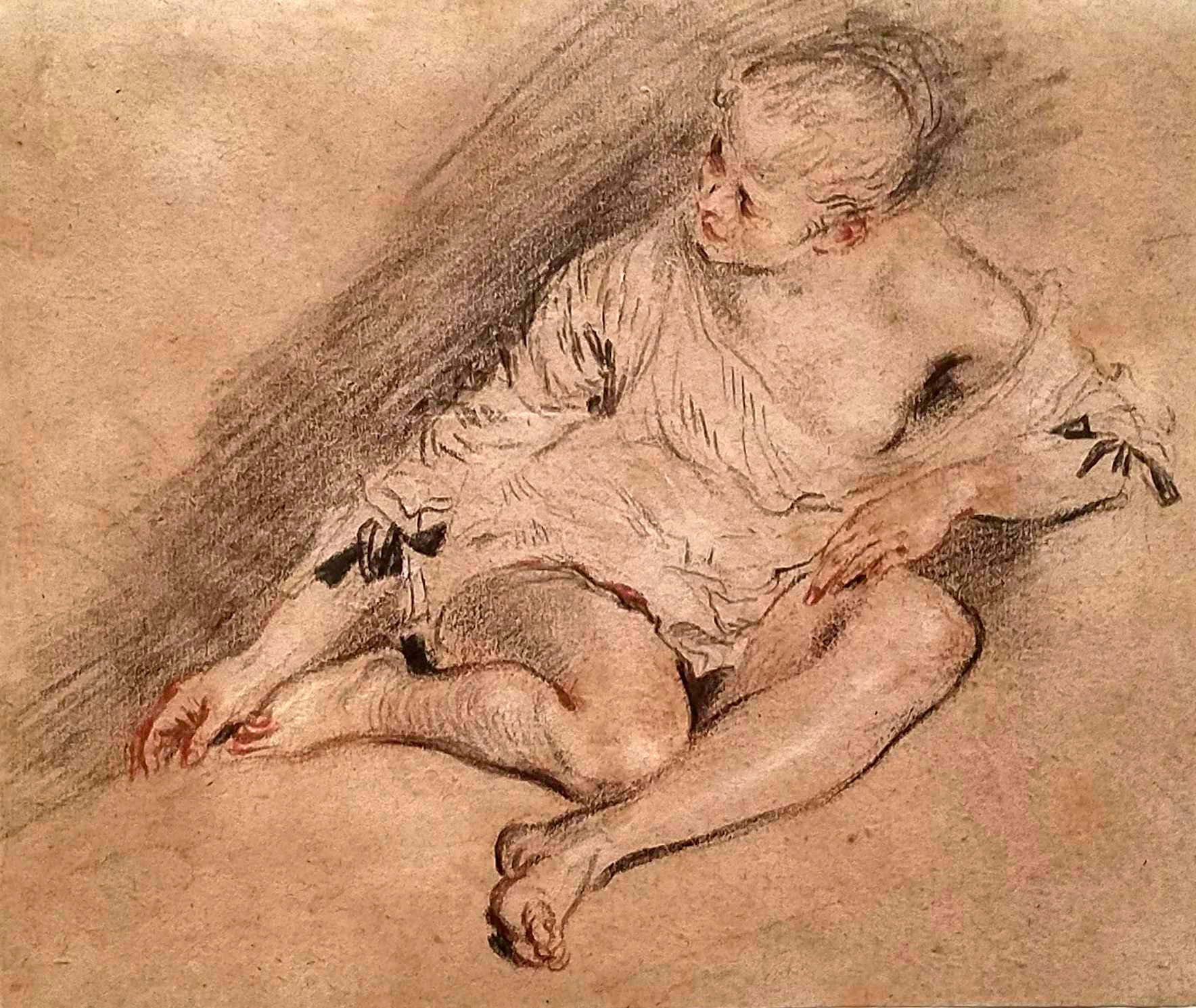 Watercolour and white opaque watercolour over black chalk on light brown paperboard