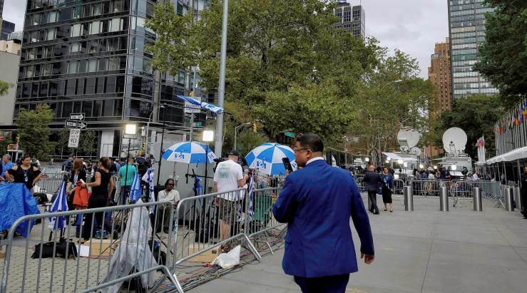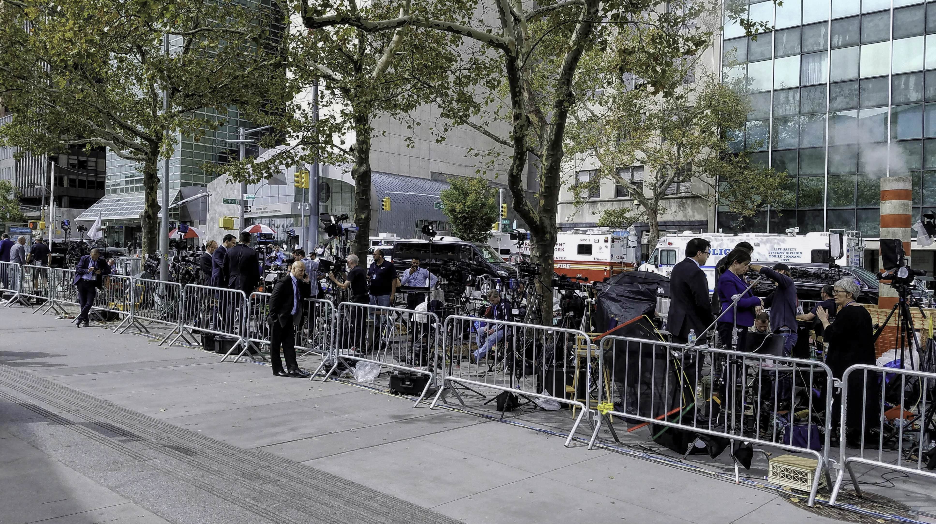 Outside UNHQ. The time of the year when the whole world lands in New York for the United Nations General Assembly and life, as locals know it, is put on hold for a week. Locals know what they should do by now: keep calm and avoid the area, unless you have business in the UN.